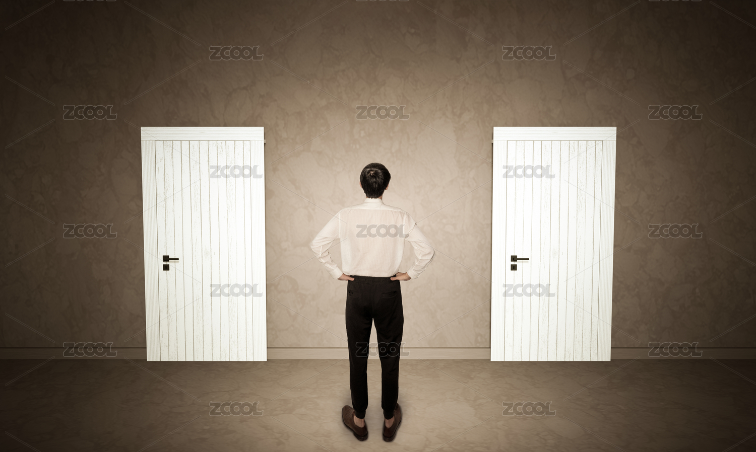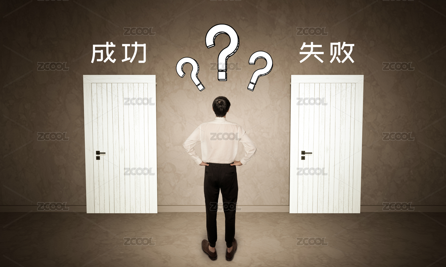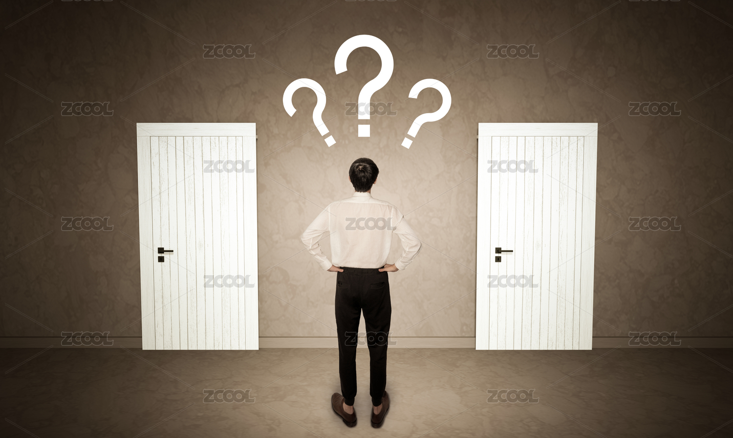 商務(wù)人士面臨大門進行選擇而感到糾結(jié)問號不解焦慮概念