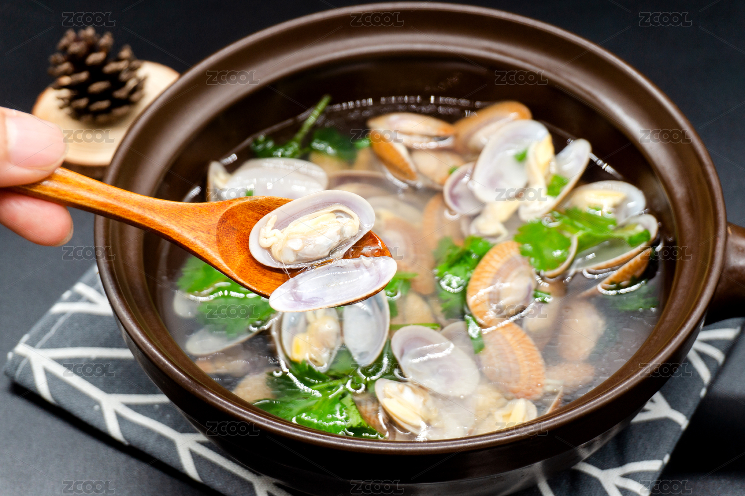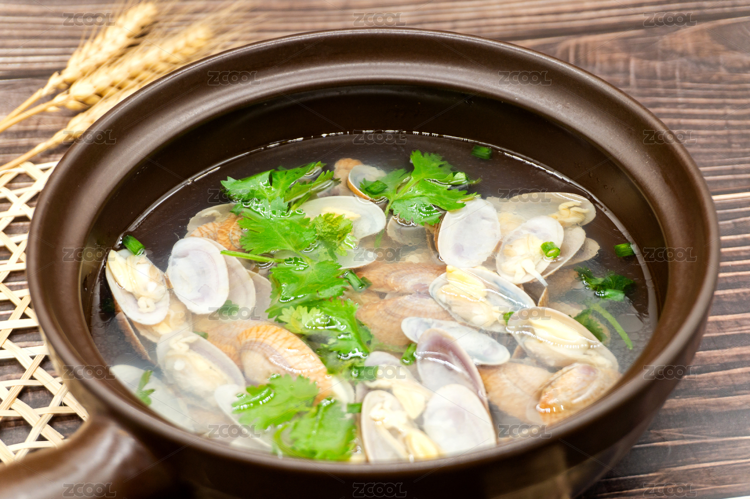 木桌背景營養(yǎng)海鮮湯花蛤湯