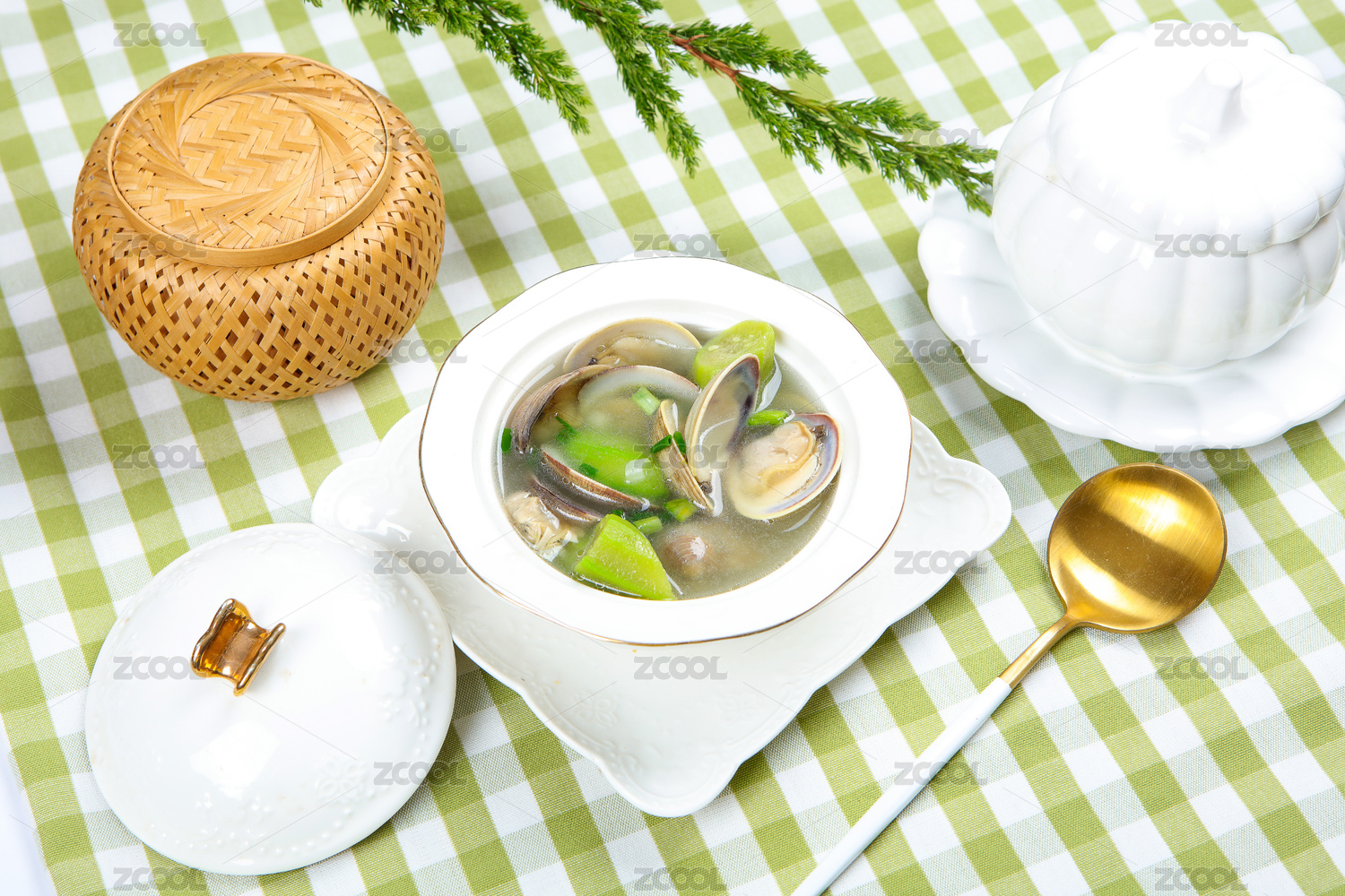 白背景營養(yǎng)海鮮湯花蛤湯