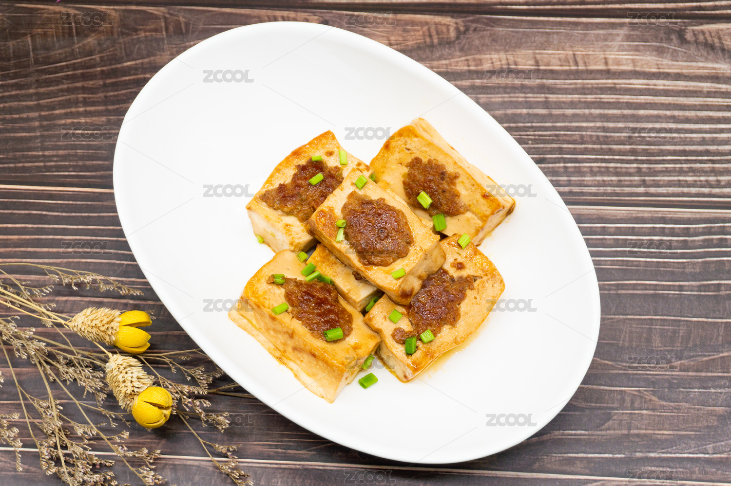 木桌背景一盤車田豆腐特寫