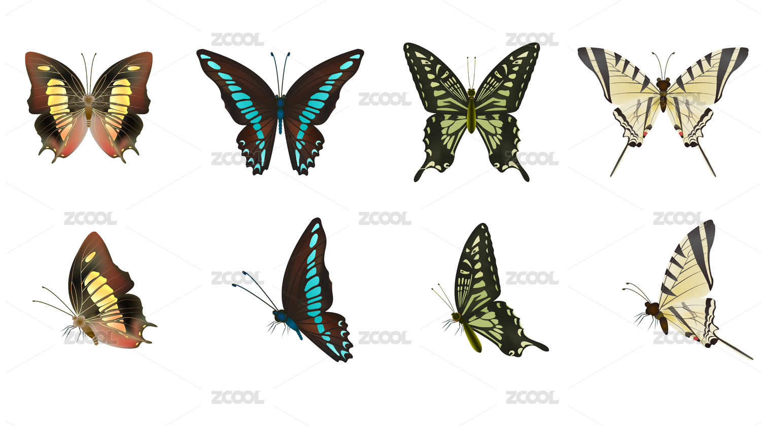 多款不同品種的蝴蝶平鋪矢量素材插畫
