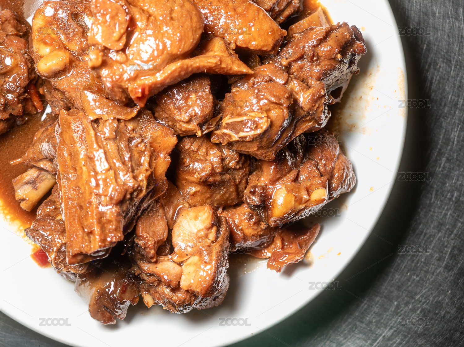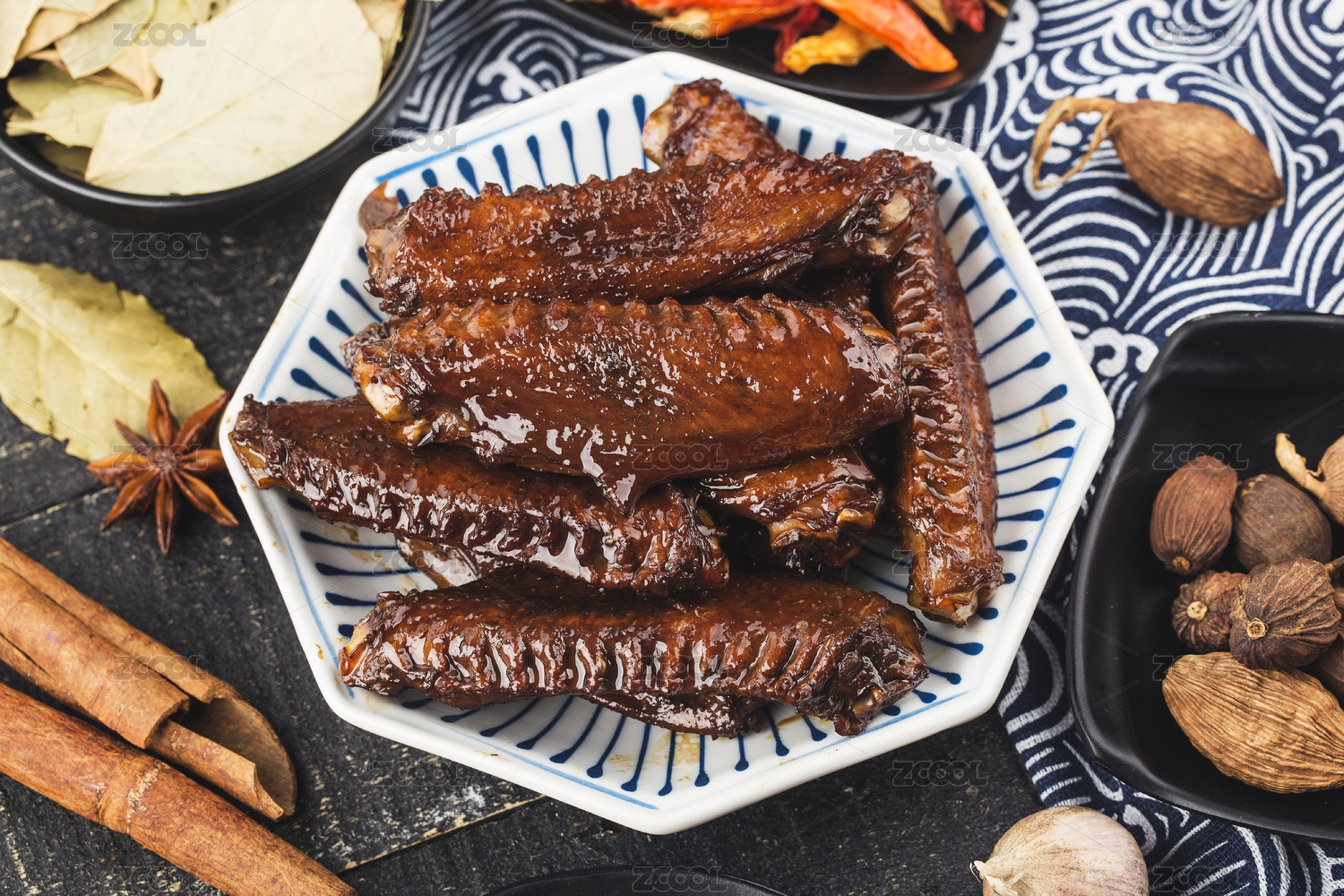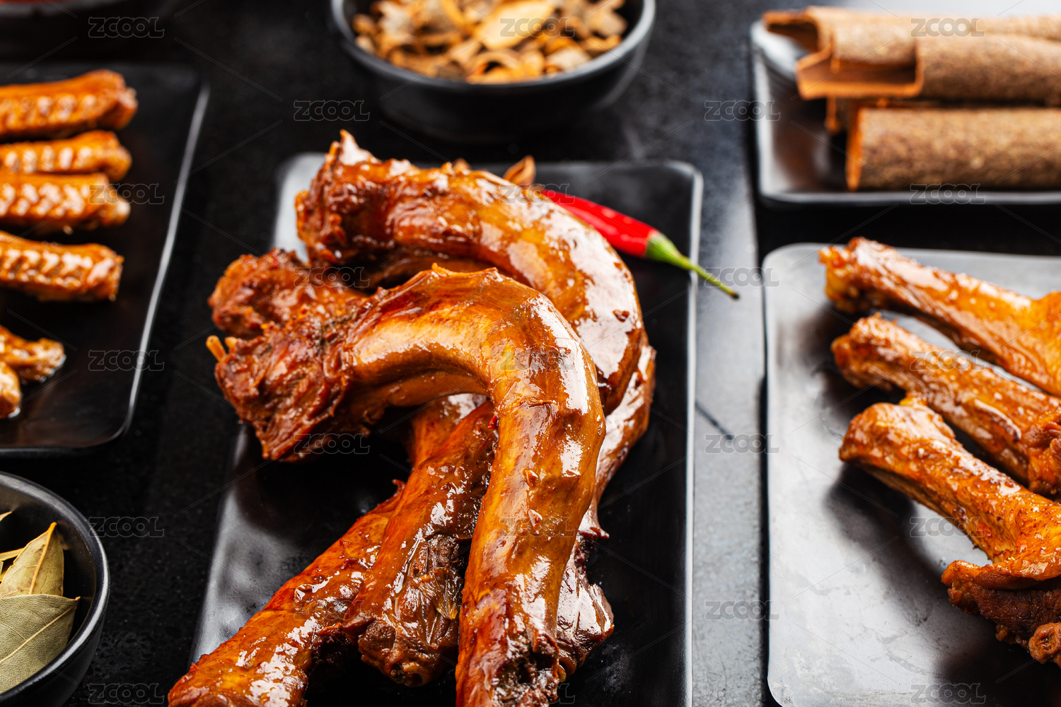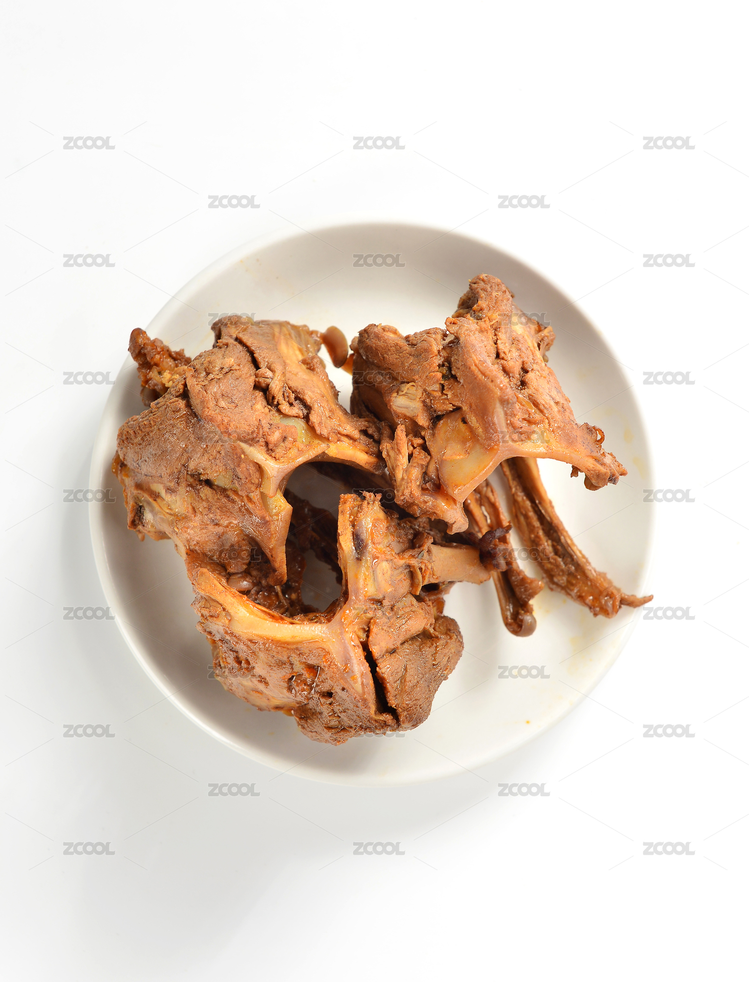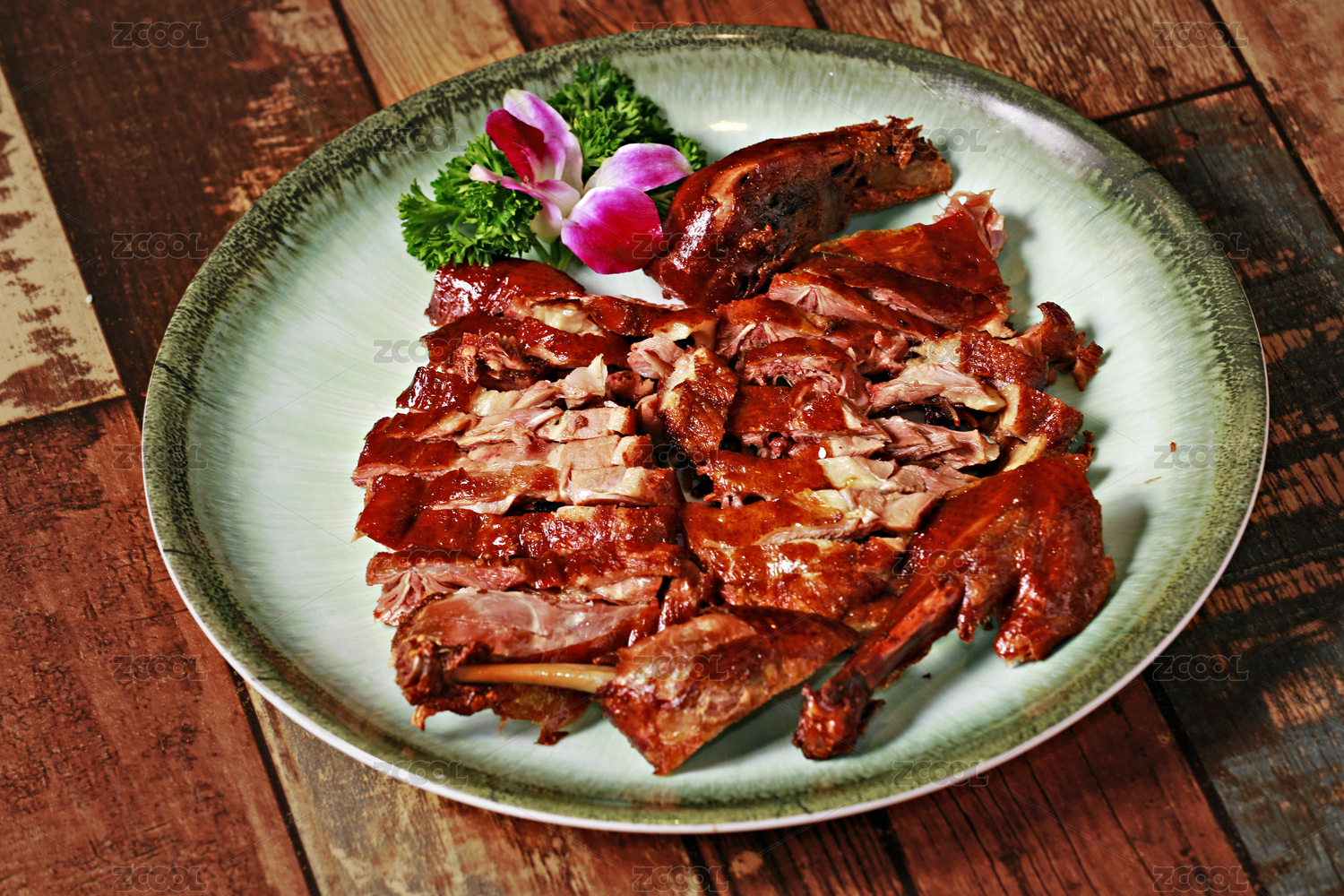 裝在綠色陶瓷盤子里面的板鴨鹵鴨子