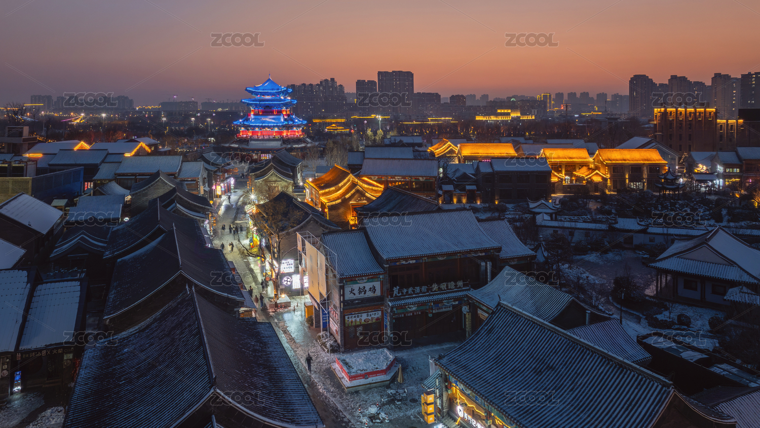 中國(guó)河北省滄州市雪后南川樓與大運(yùn)河