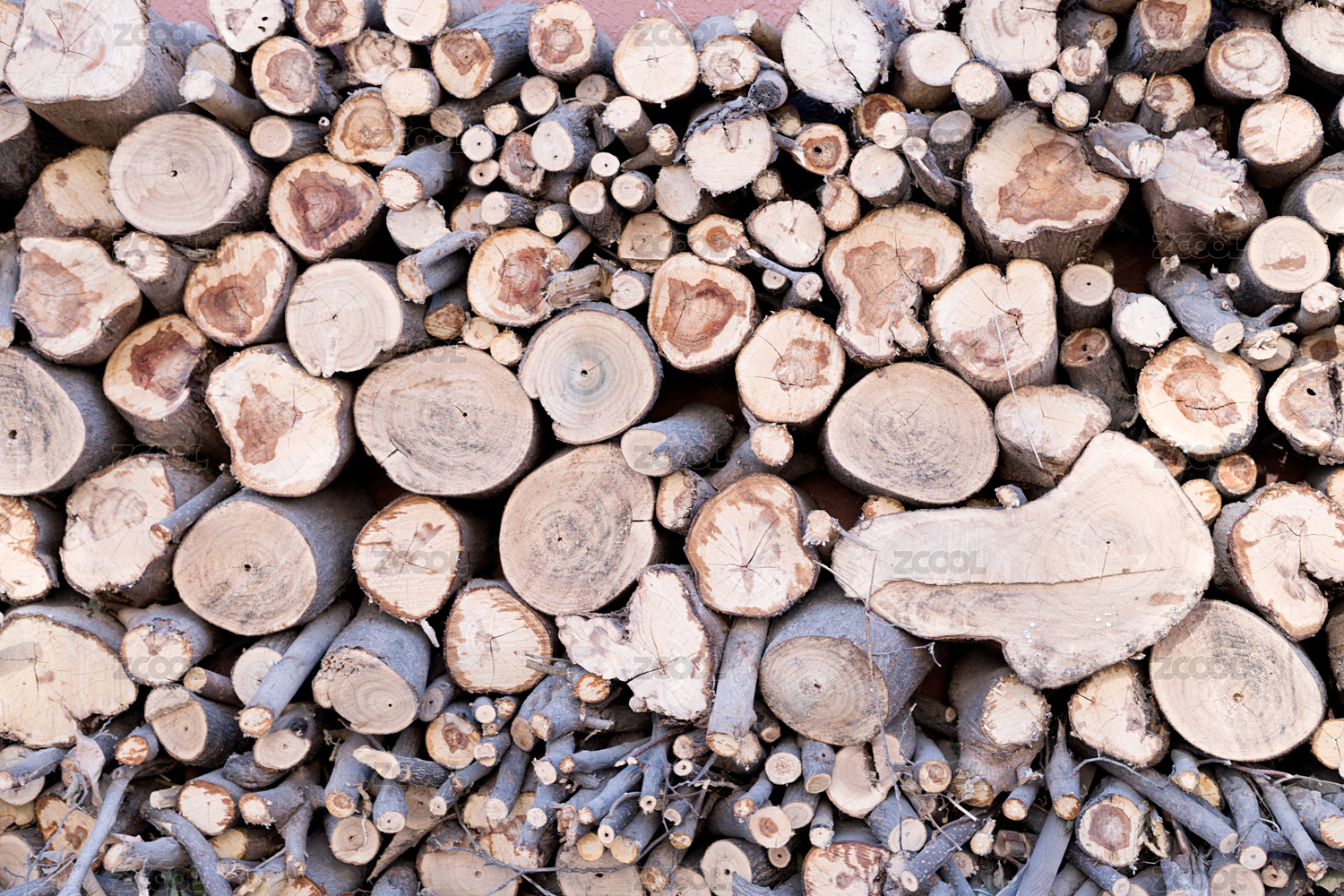 中國鄉(xiāng)村冬季戶外碼放整齊的木柴堆