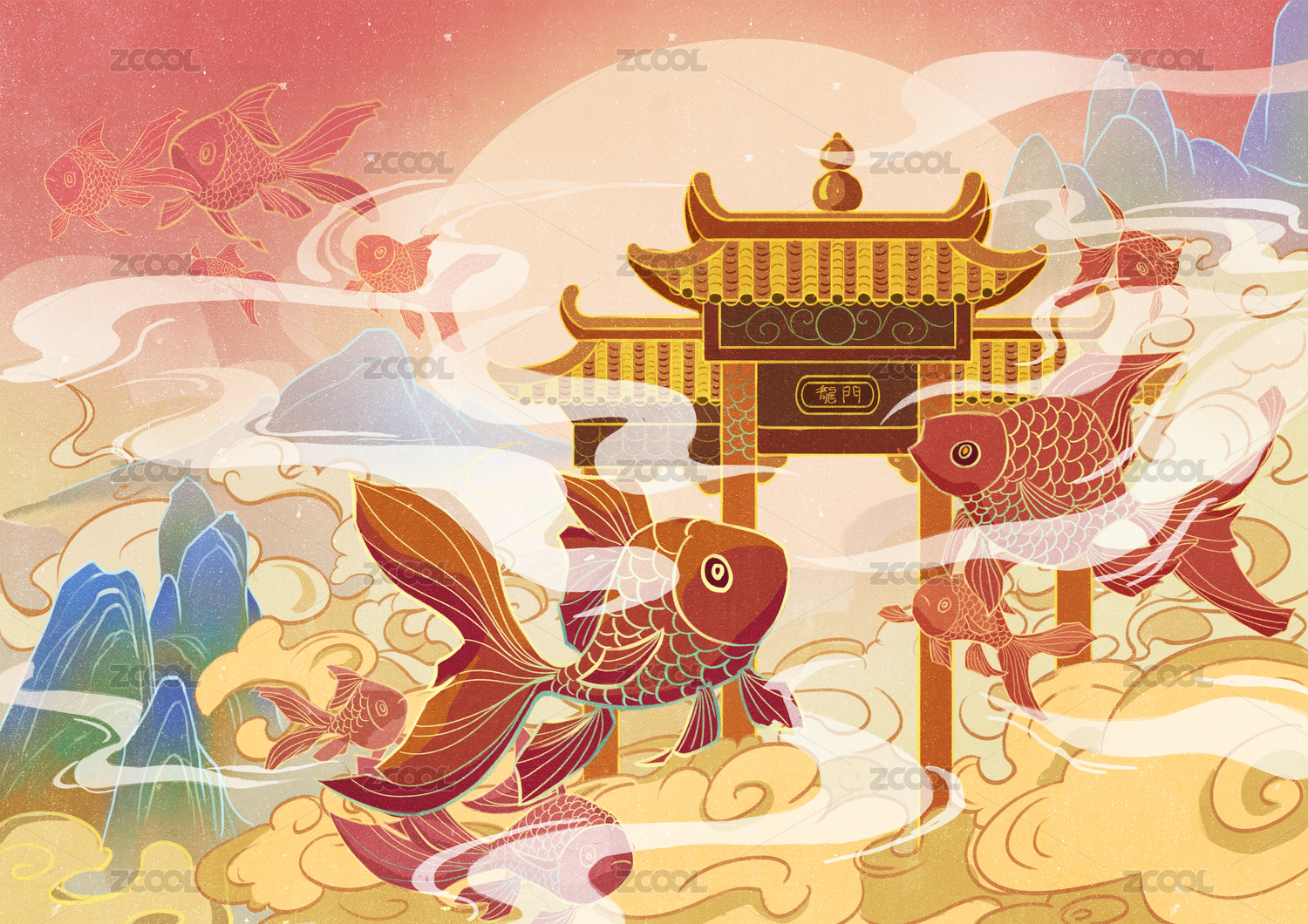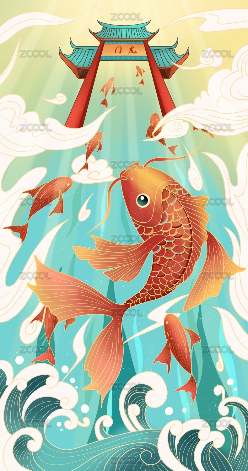 國(guó)潮插畫魚躍龍門