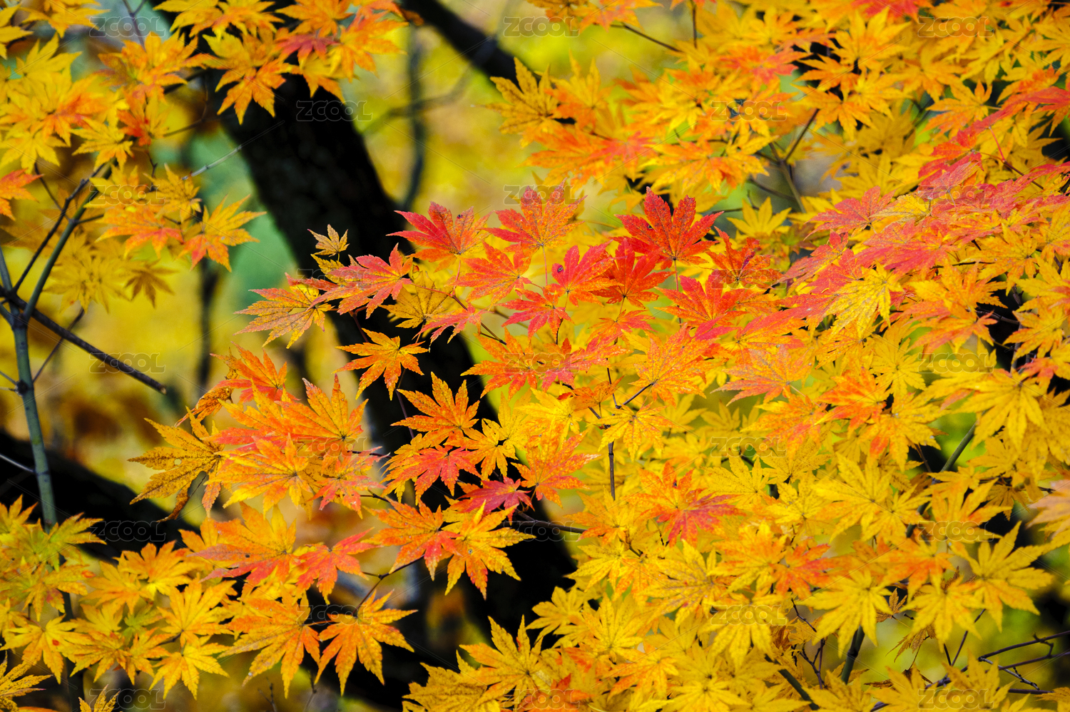 秋季里成片的金黃色與紅色相間的楓葉