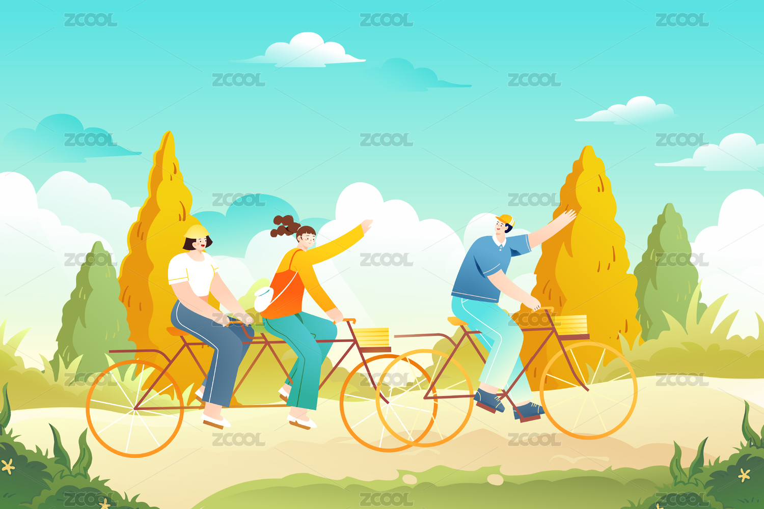 秋季出游矢量插畫