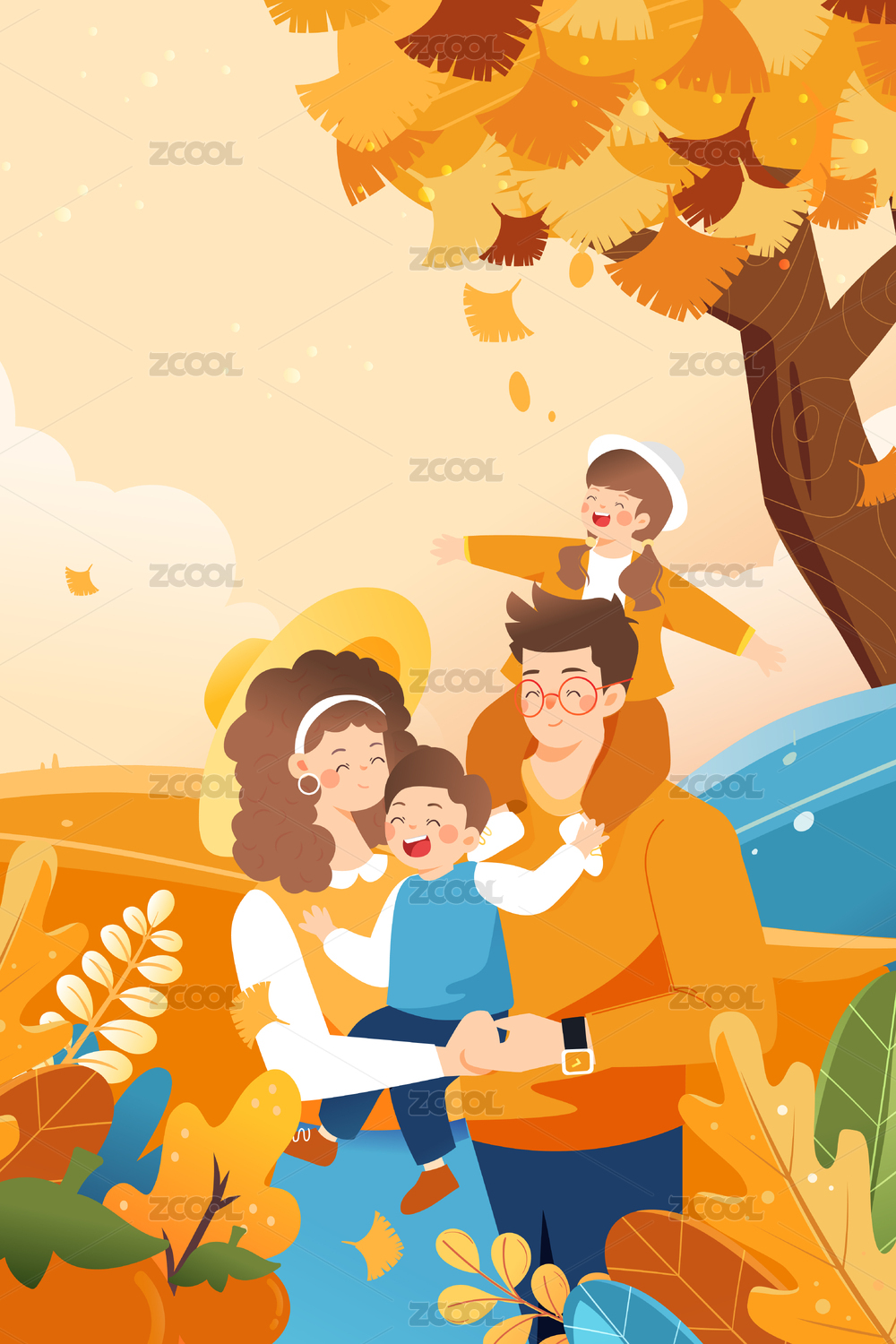 秋季親子游矢量插畫