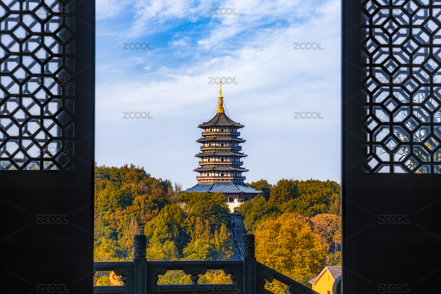 杭州西湖景區(qū)雷峰塔秋季景觀