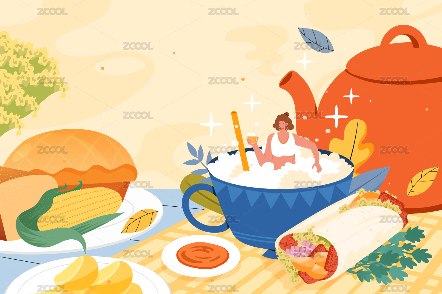 秋季下午茶美食矢量插畫