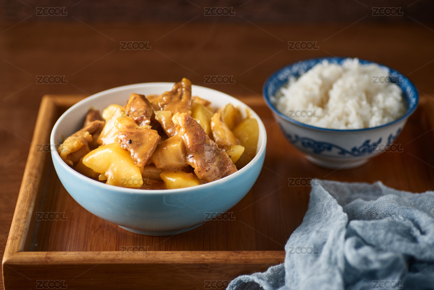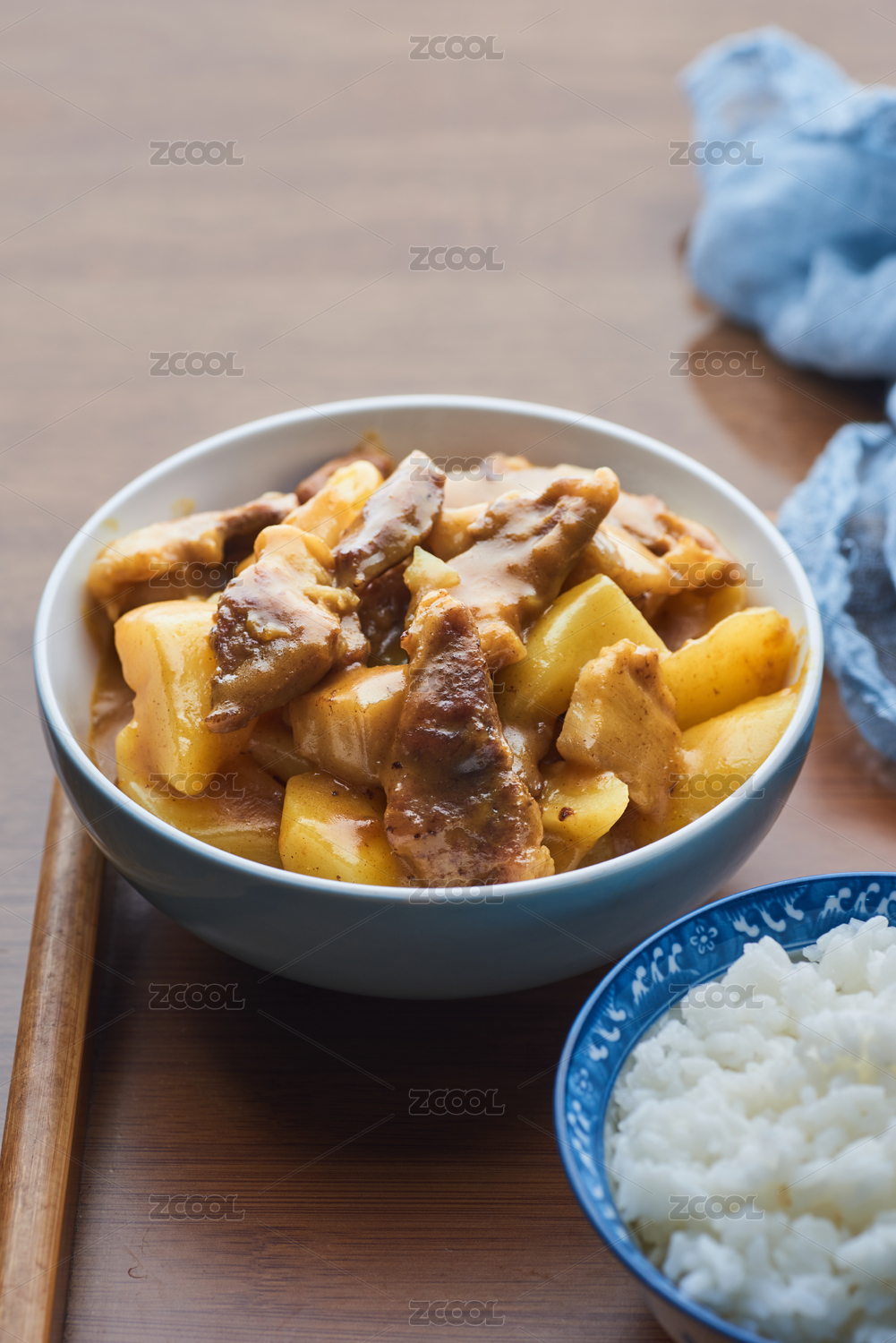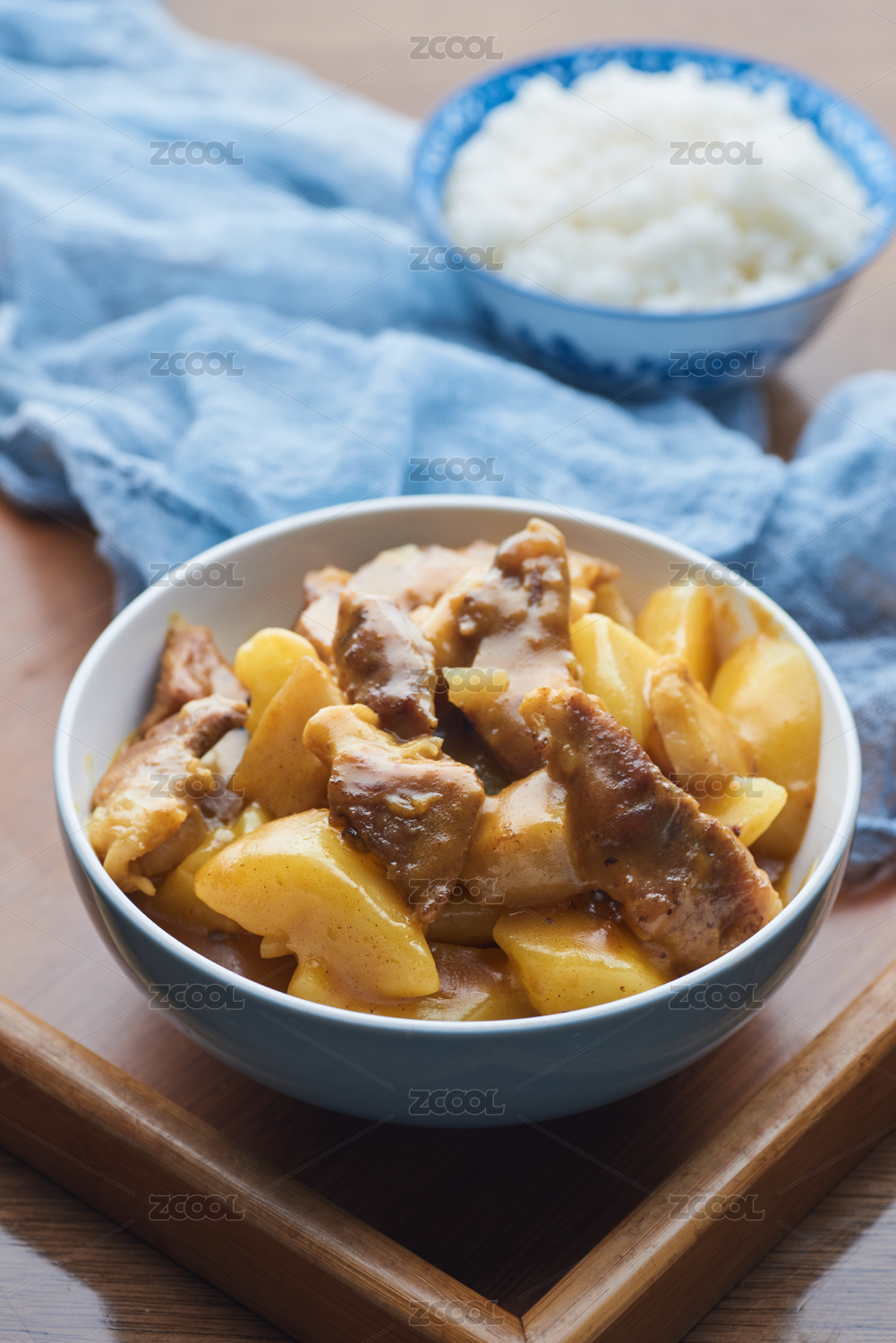 東南亞風味咖喱土豆燉豬肉配白米飯