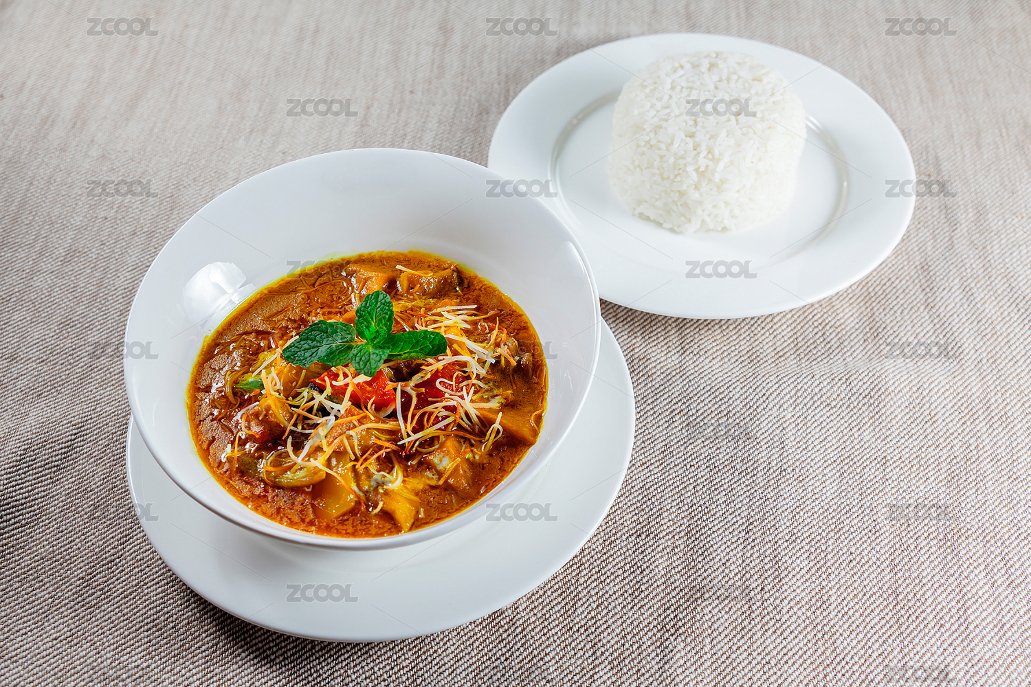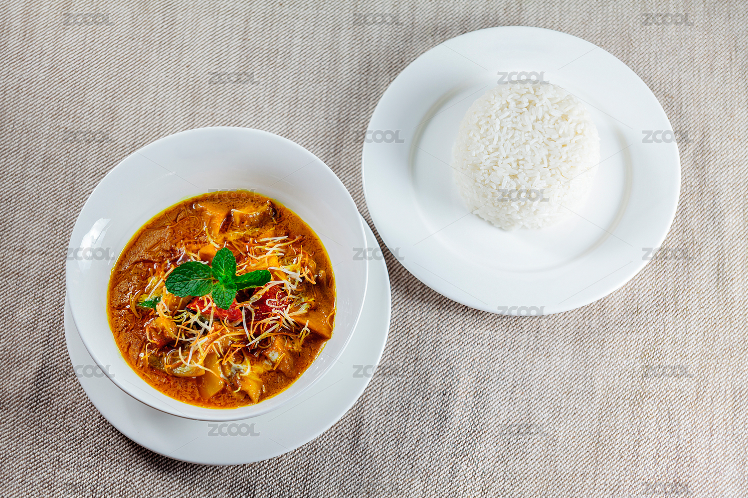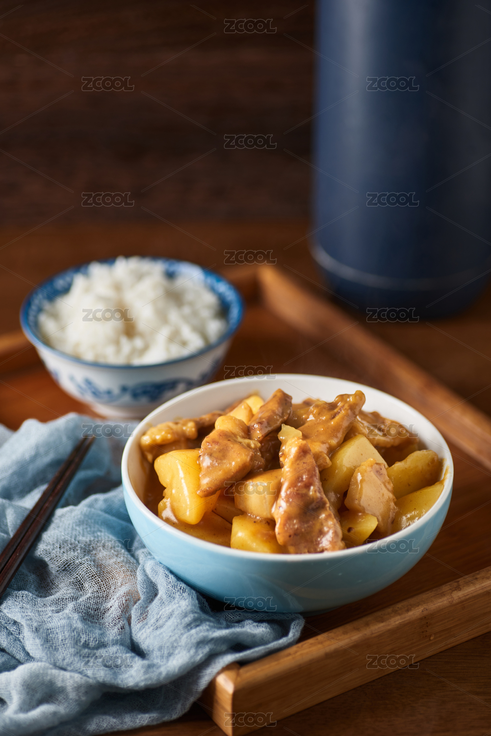 東南亞風味咖喱土豆燉豬肉配白米飯