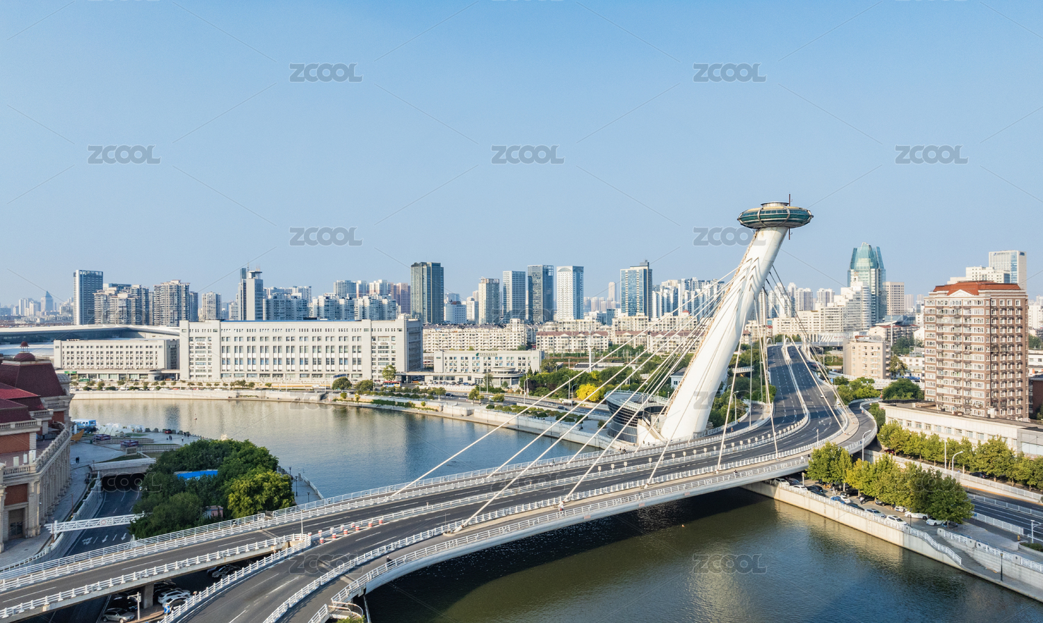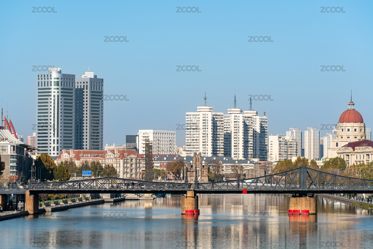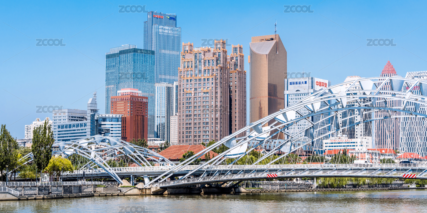 中國(guó)天津海河和直沽橋建筑特寫(xiě)