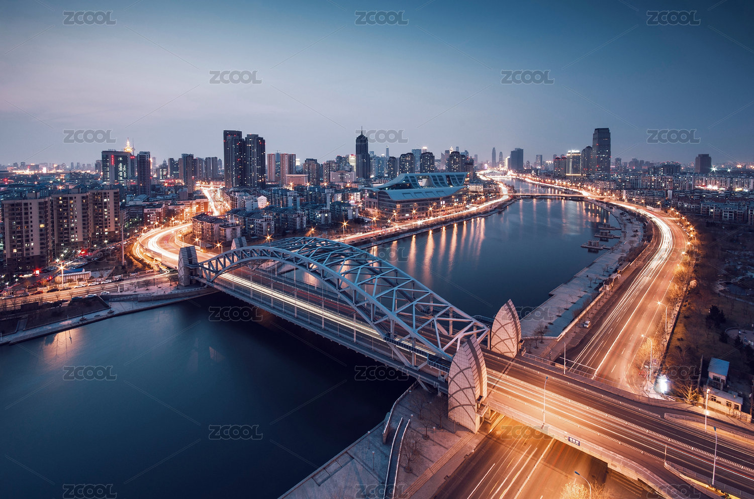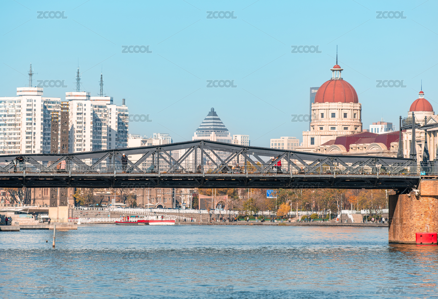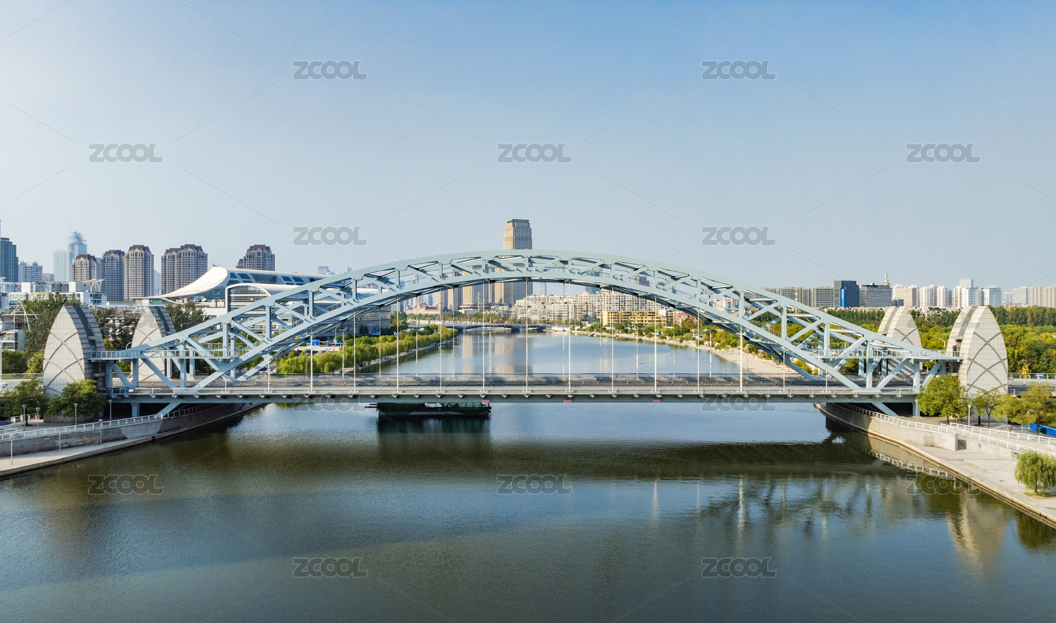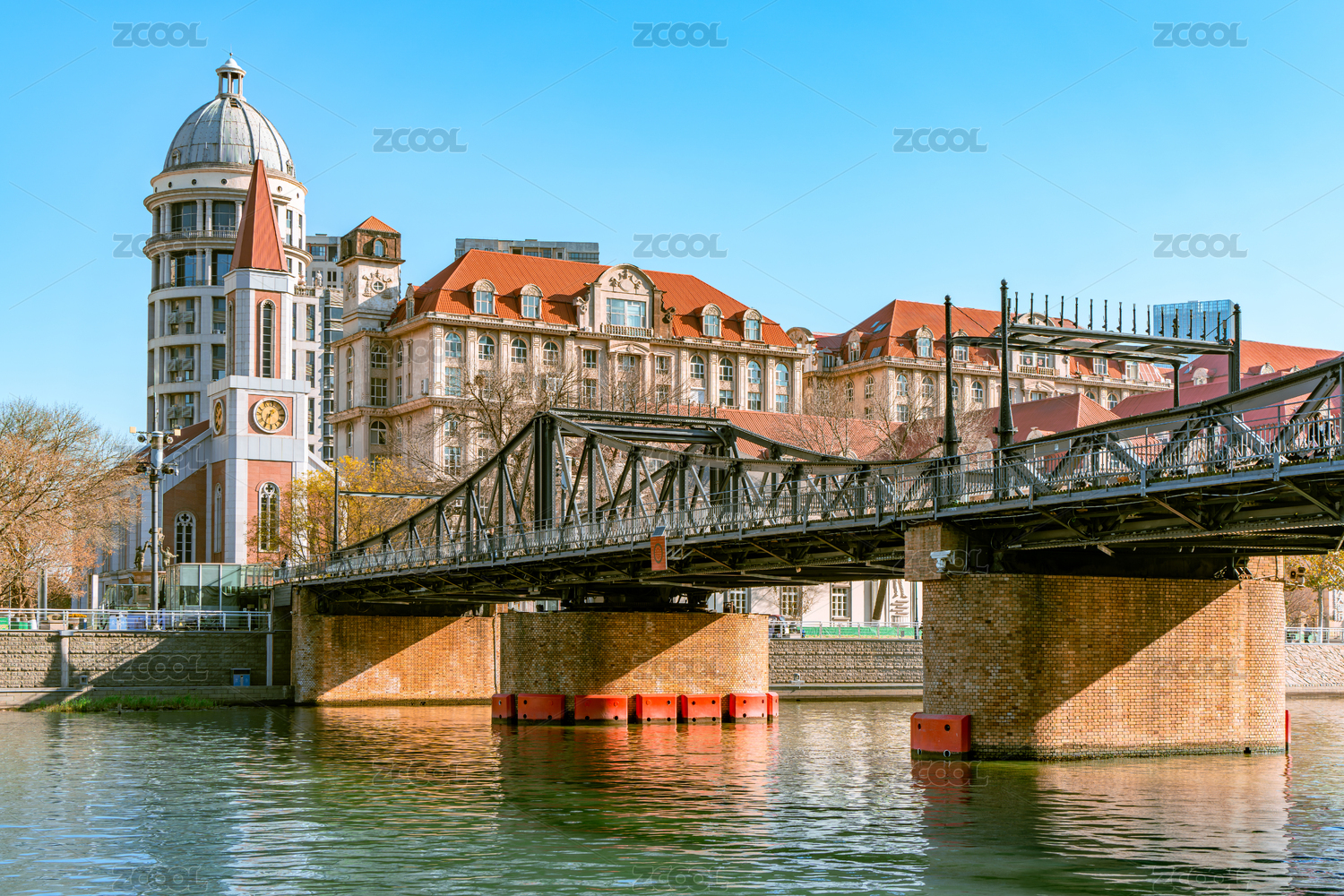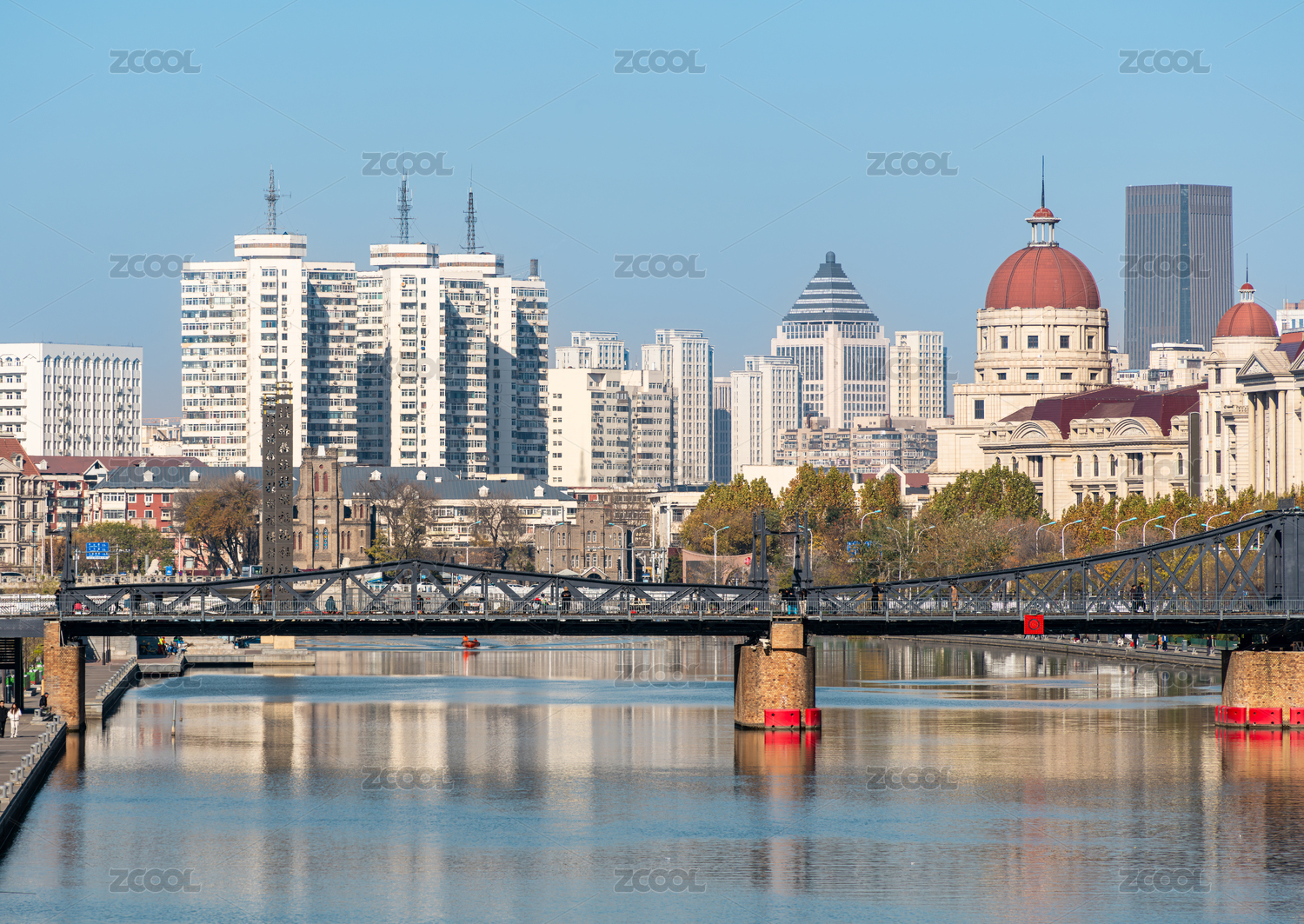 中國(guó)天津海河上的金湯橋建筑風(fēng)光