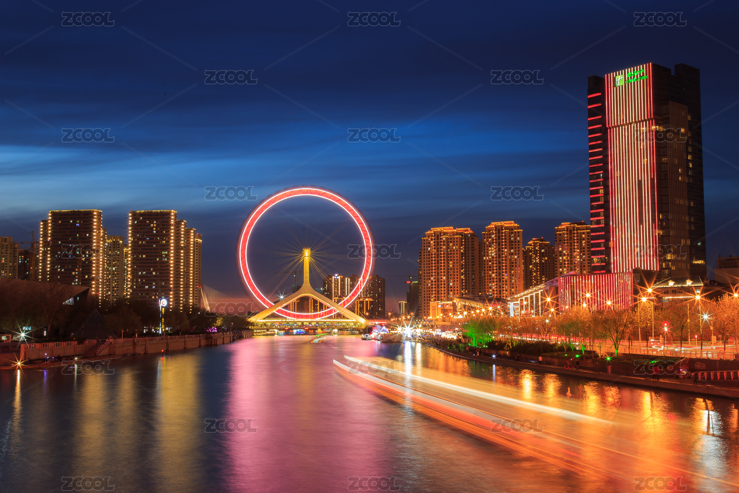 中國(guó)天津海河金剛橋天津之眼慢門夜景拍攝