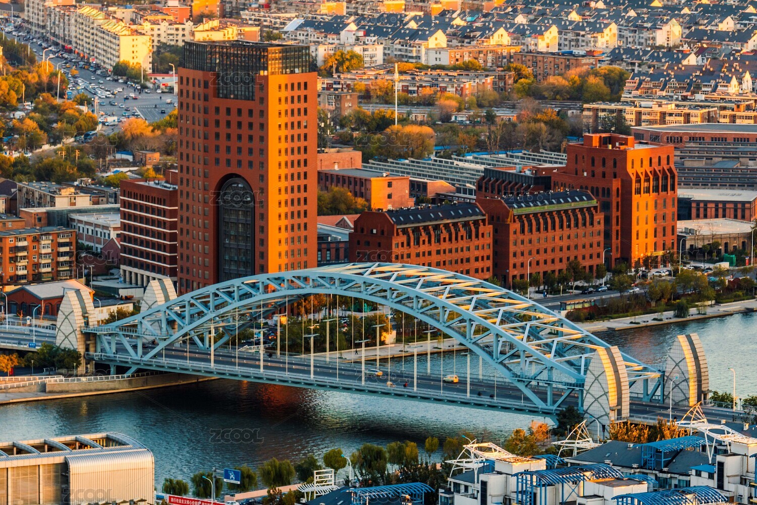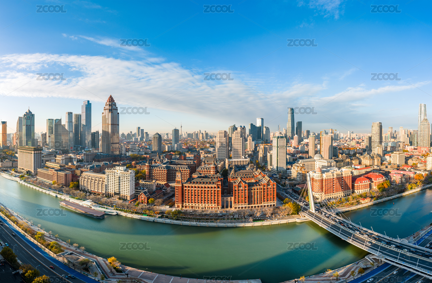 中國(guó)天津海河金匯橋秋季航拍圖