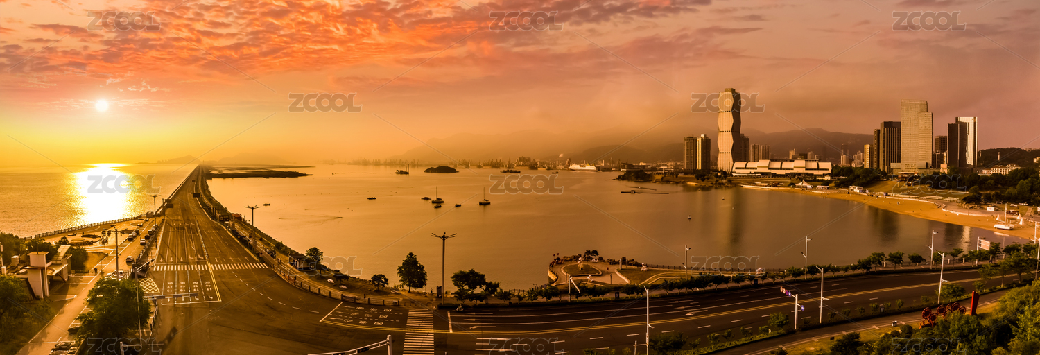 中國江蘇省連云港市黃昏夕陽連島公路建筑