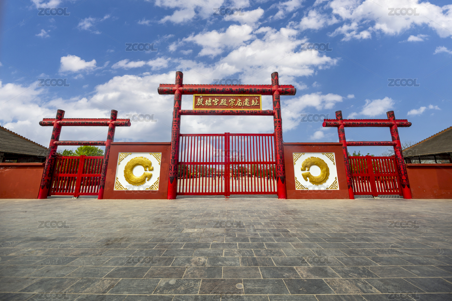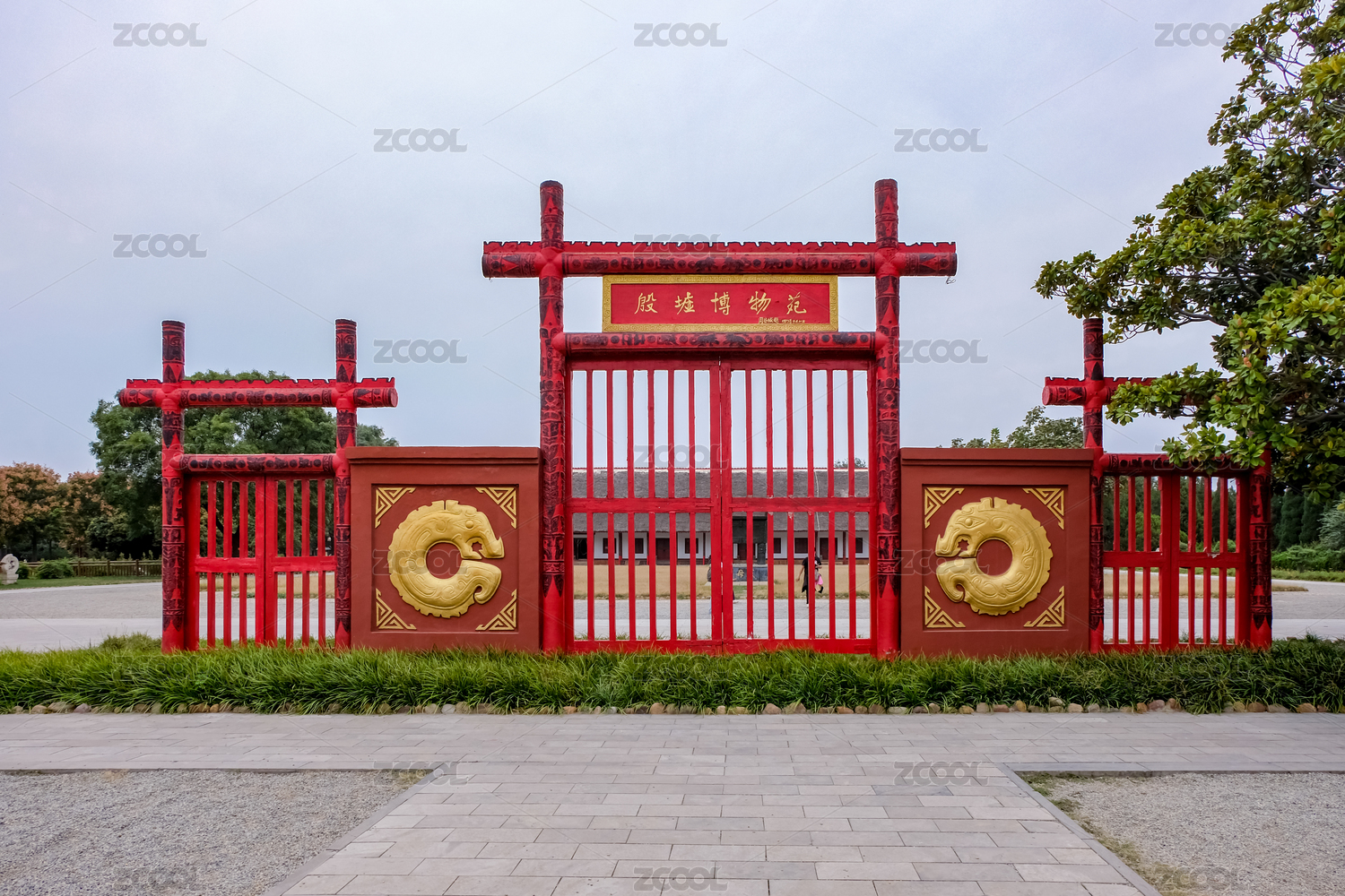 紅色的殷墟博物館牌坊