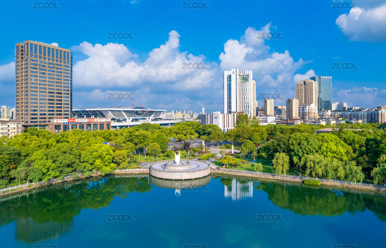 浙江省寧波站與月湖公園