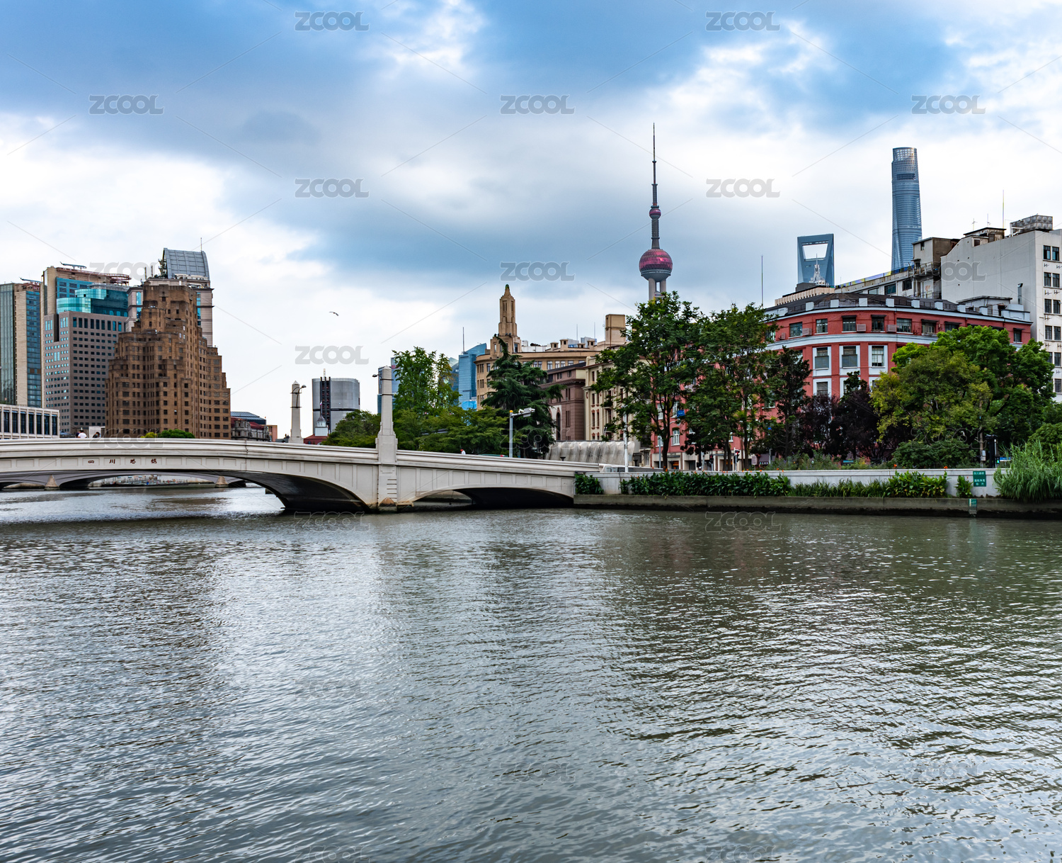中國上海外灘外白渡橋蘇州河乍浦路橋建筑風(fēng)光
