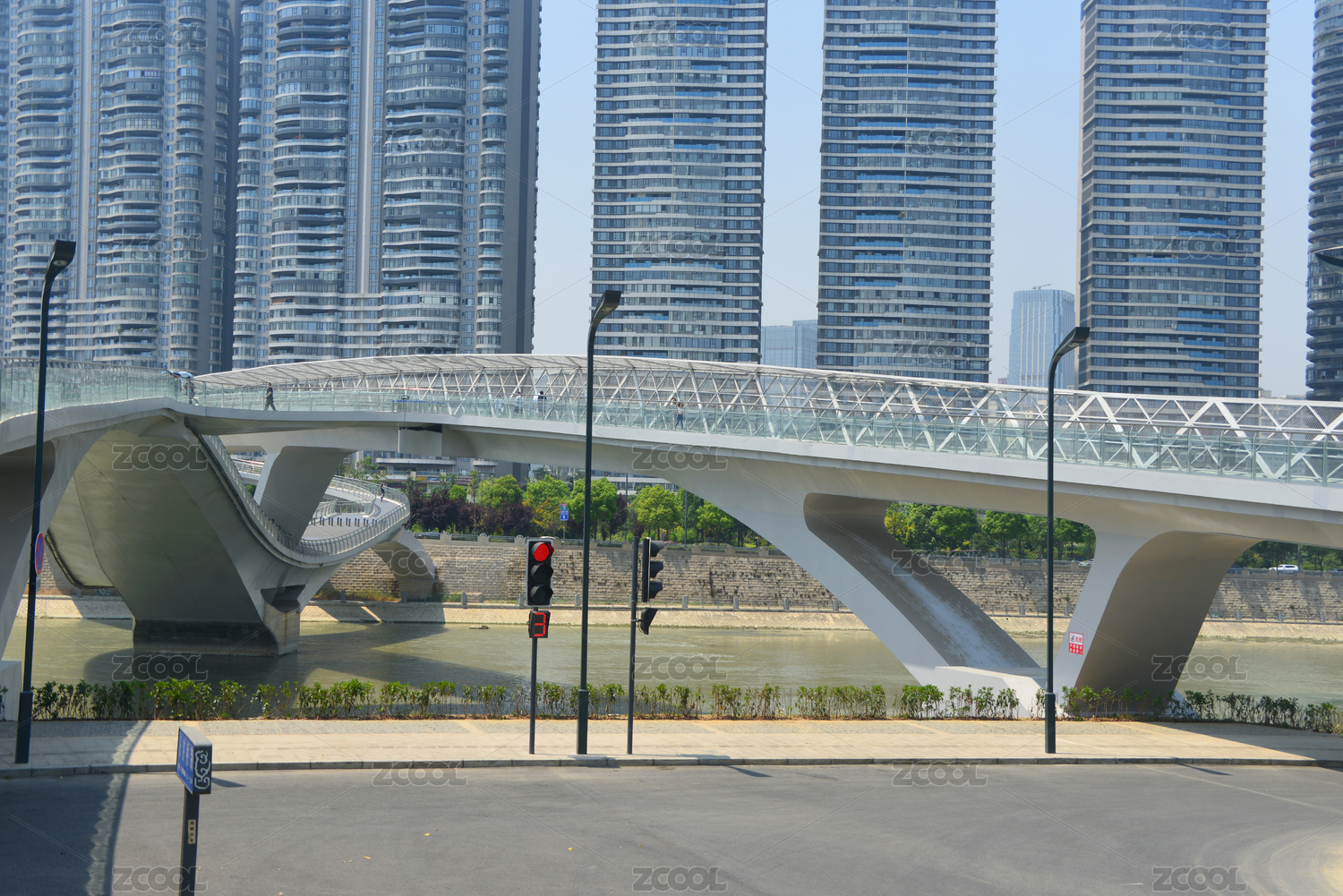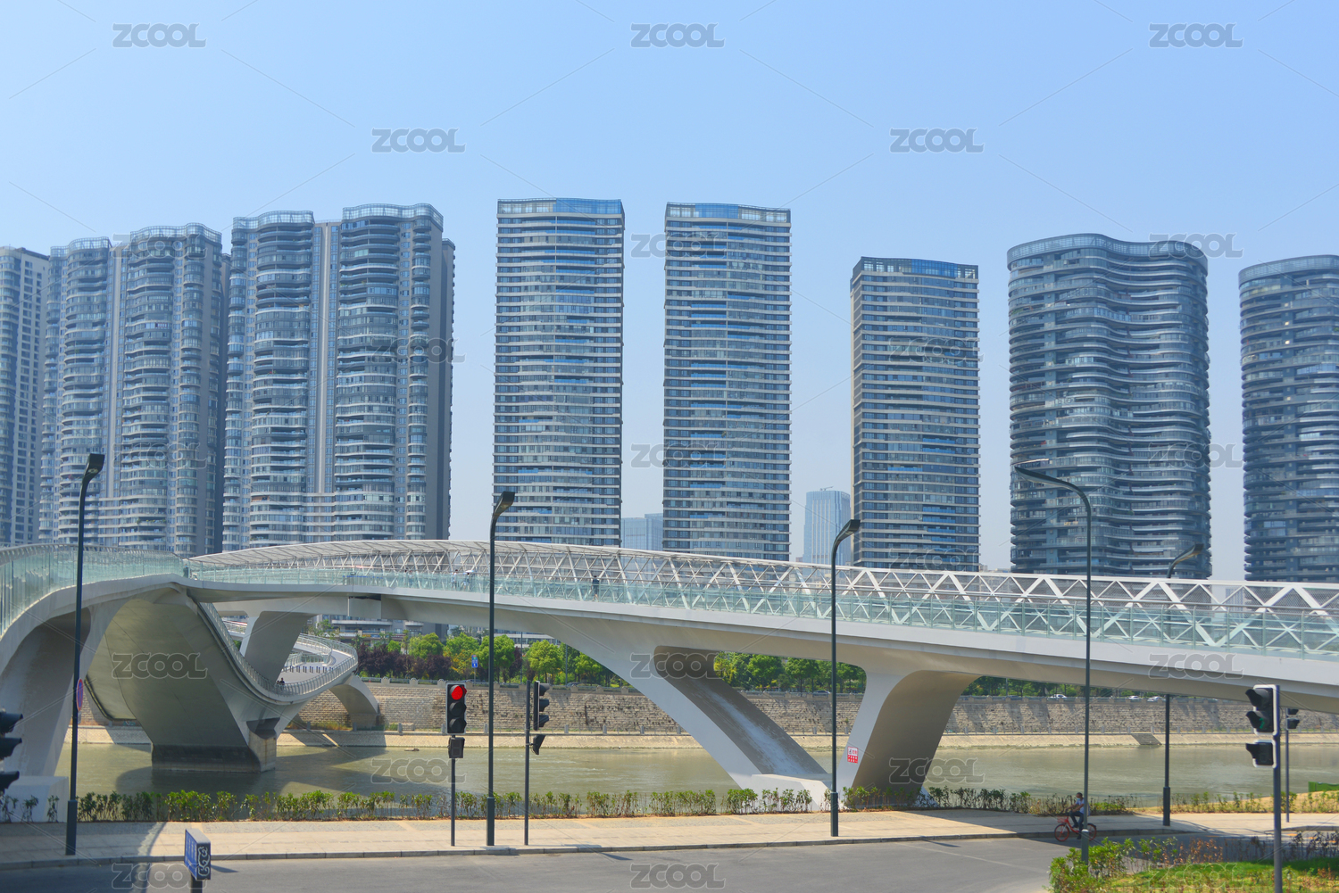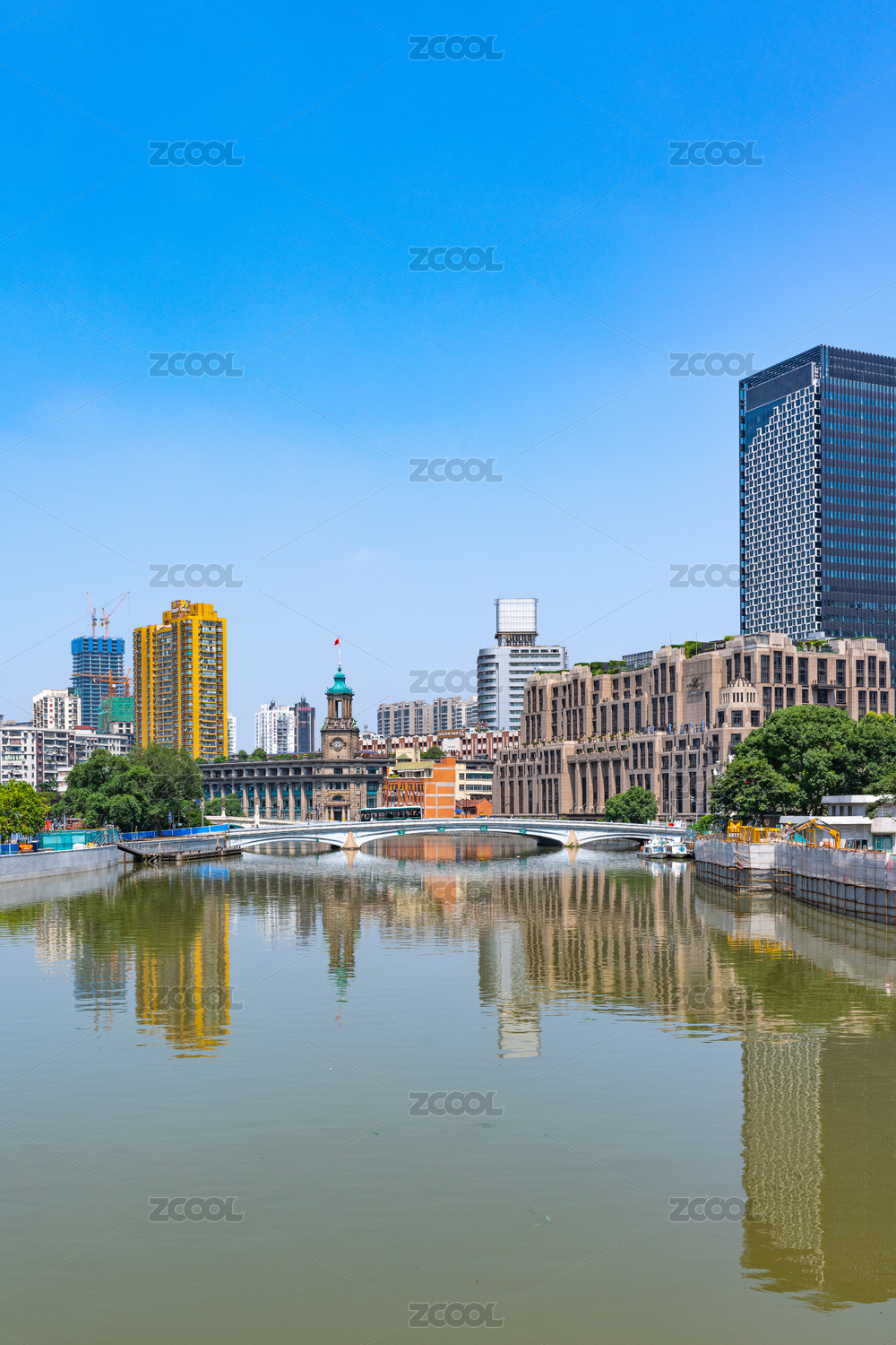 中國四川成都府河路橋建筑及沿岸城市風(fēng)光