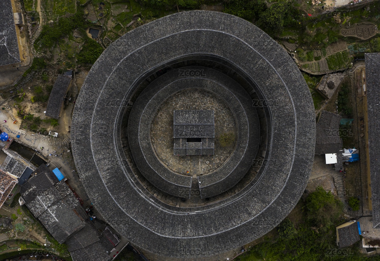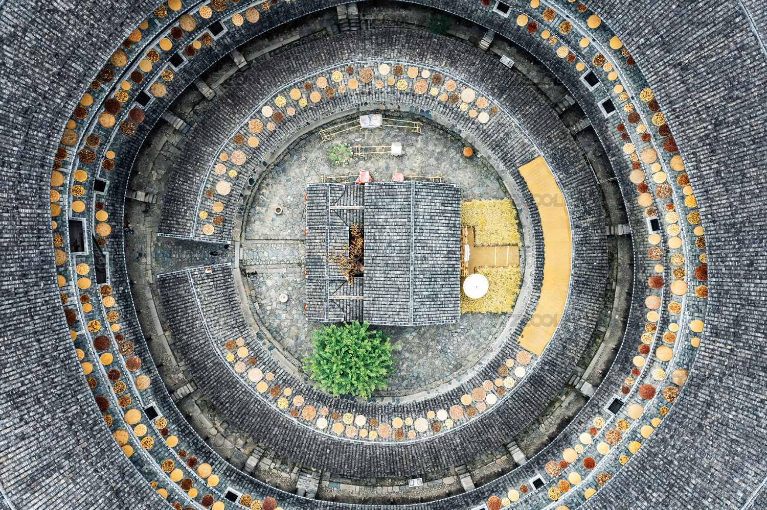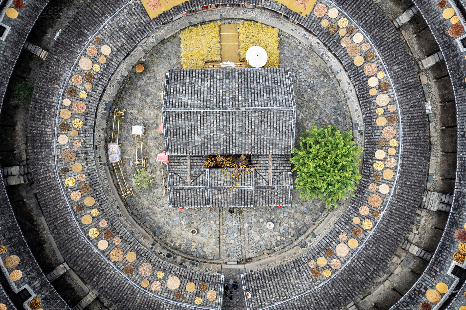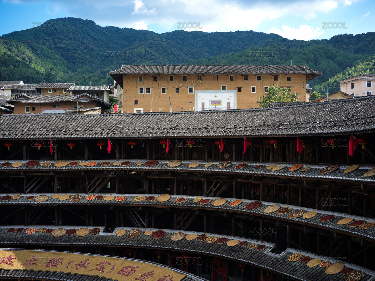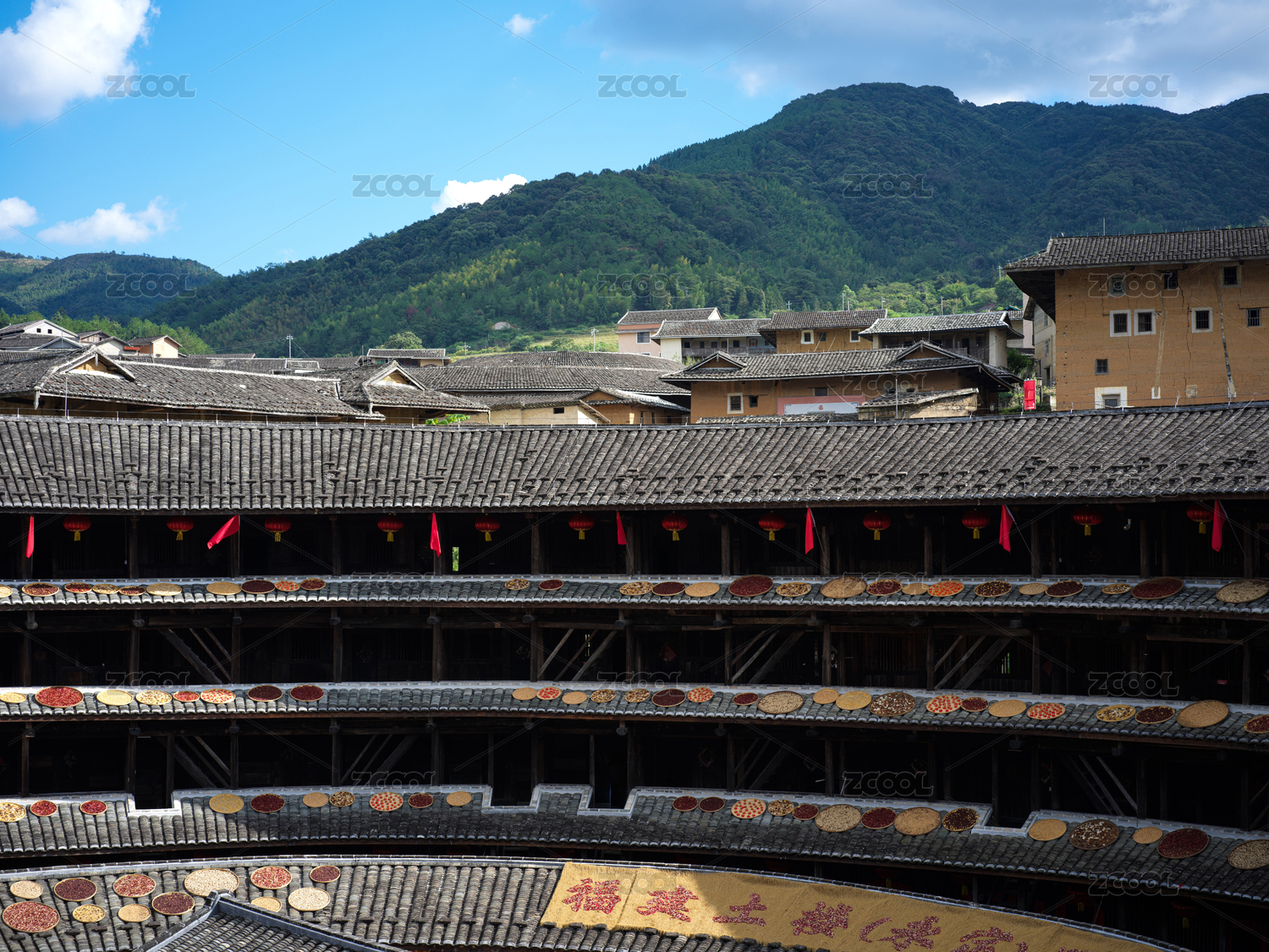 福建省龍巖市初溪土樓中的傳統(tǒng)曬秋場景