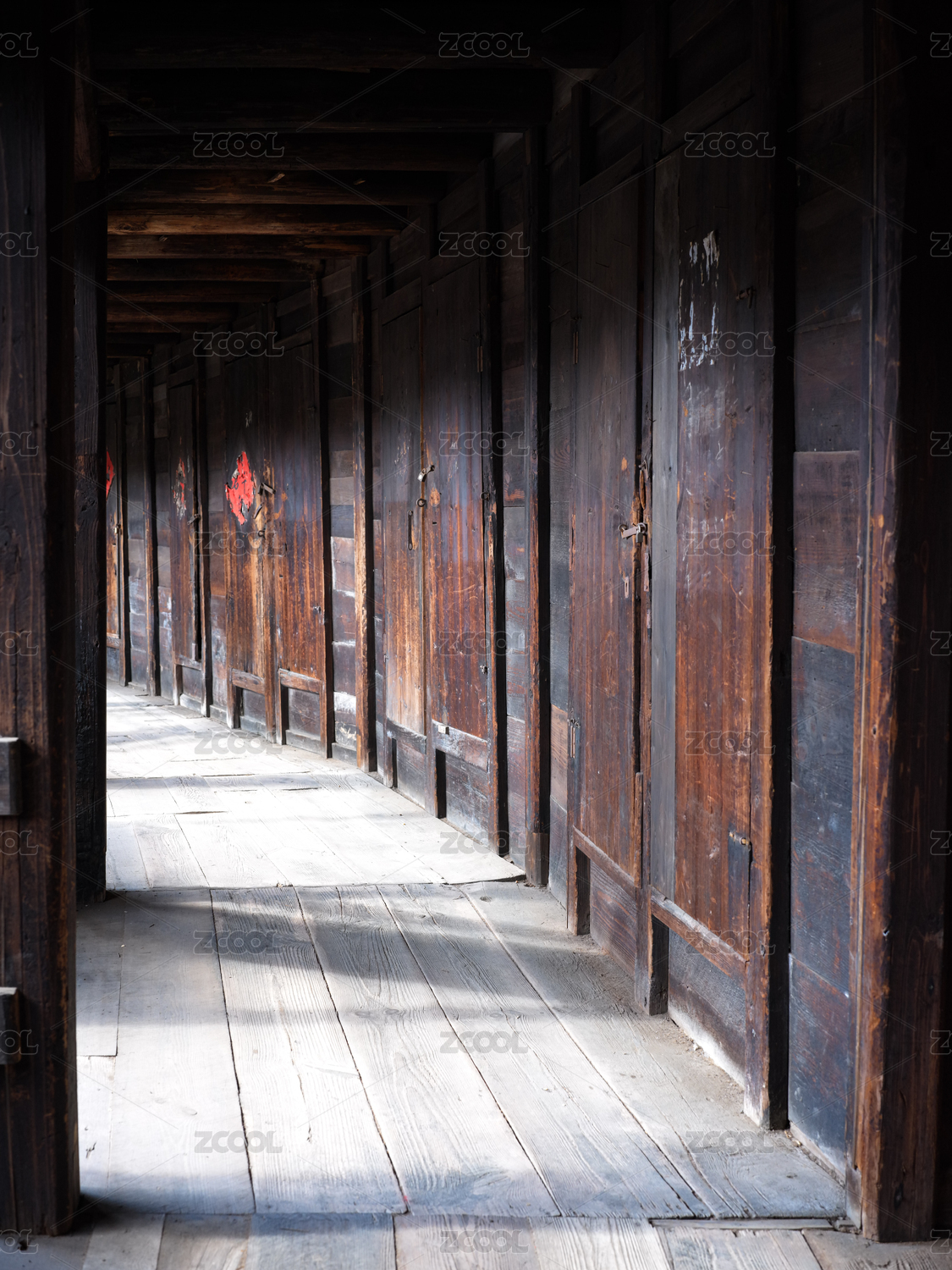 福建省龍巖市初溪土樓古老的木質樓梯通道