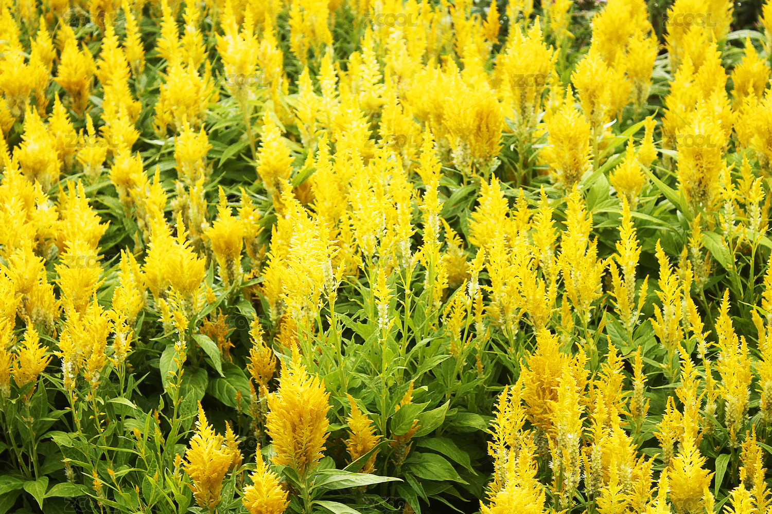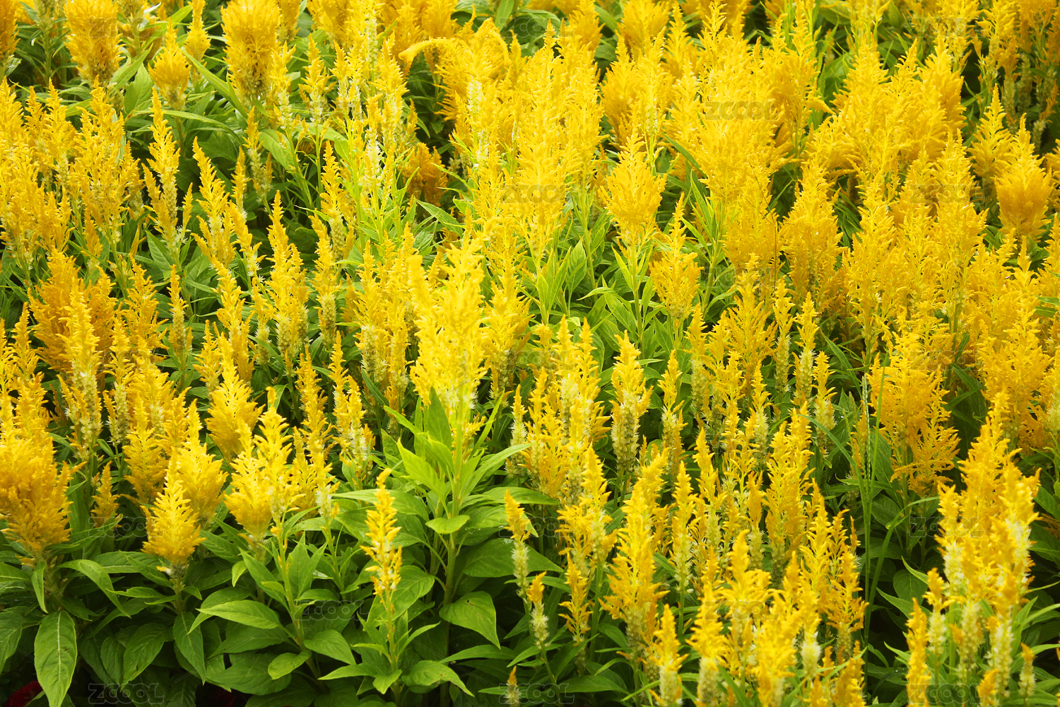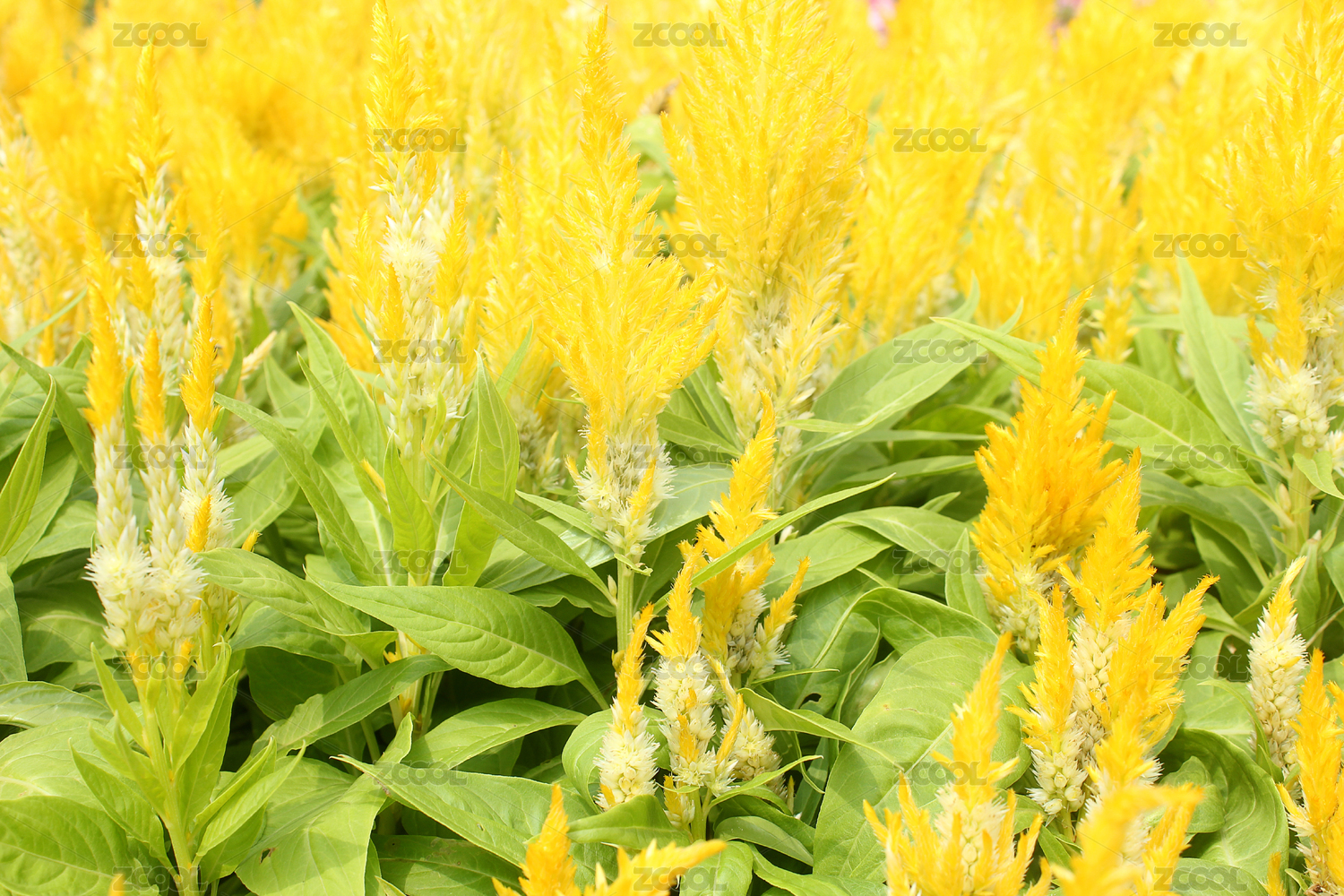 花田里一片黃色的鳳尾雞冠花