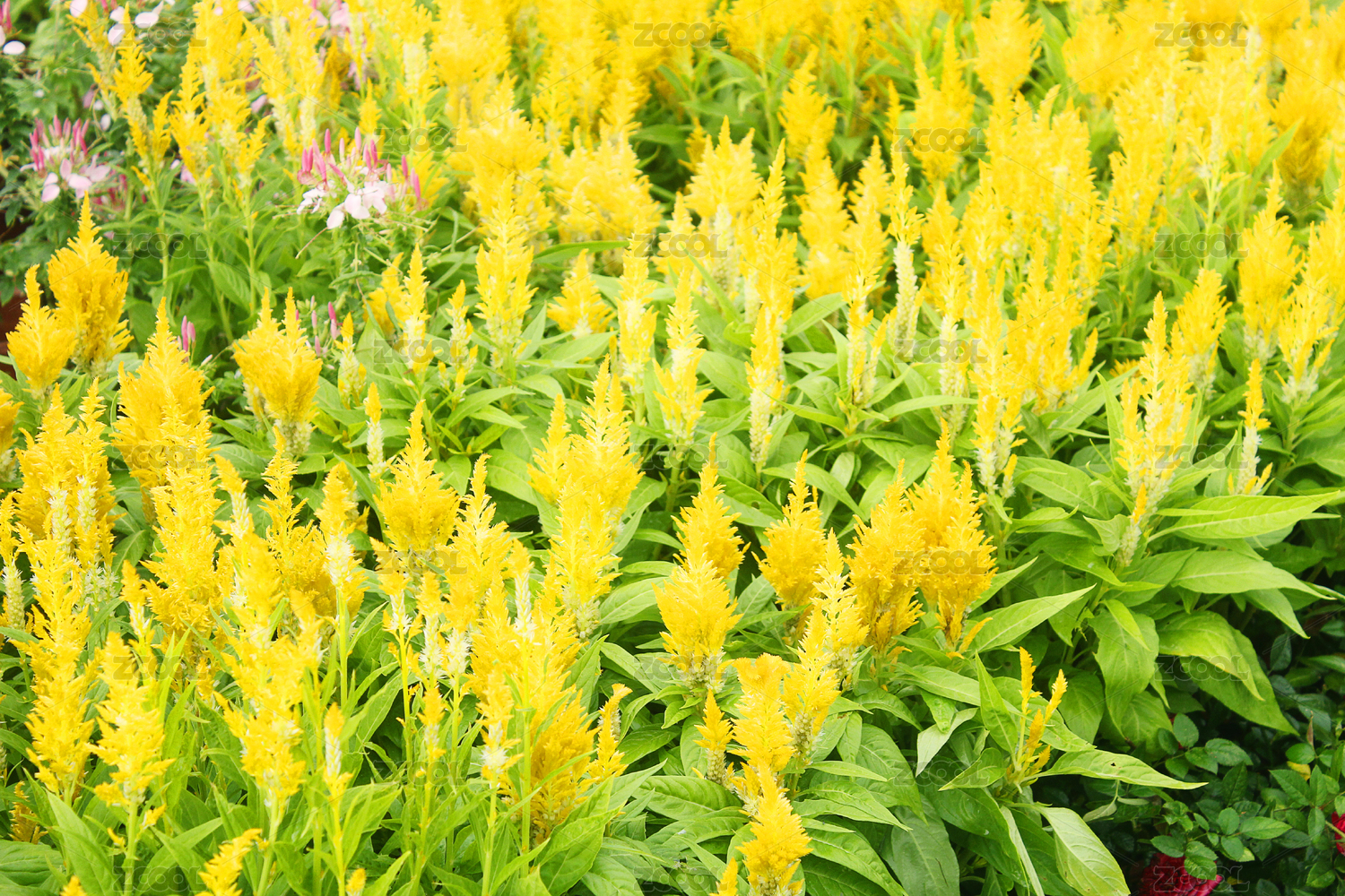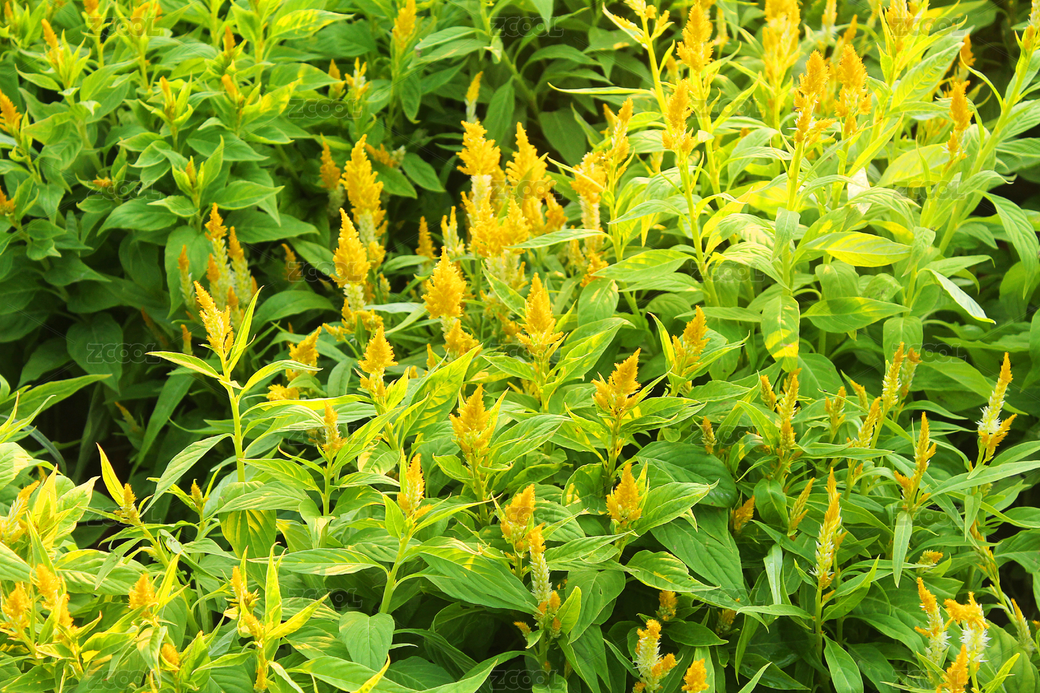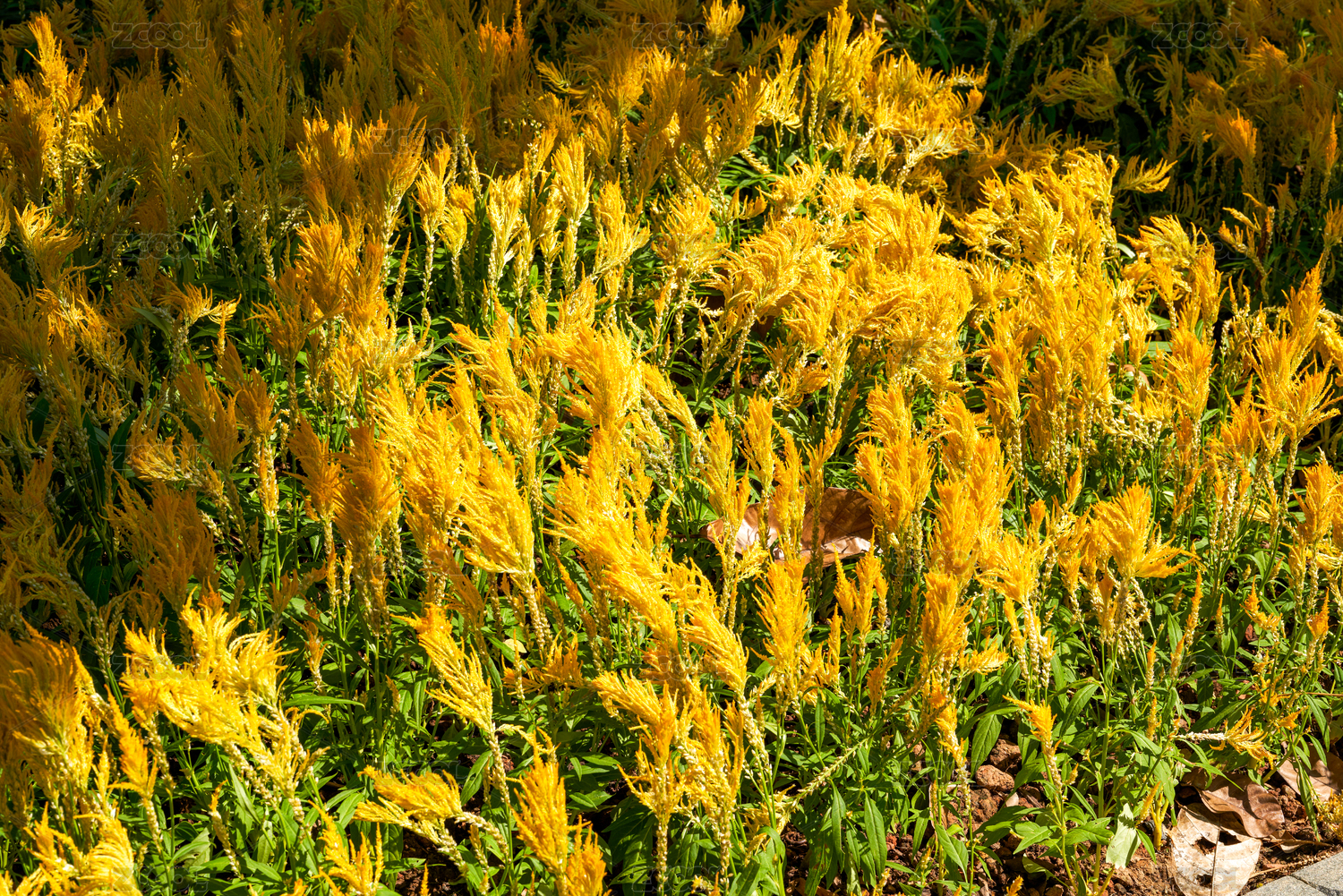 花田里一片黃色的鳳尾雞冠花