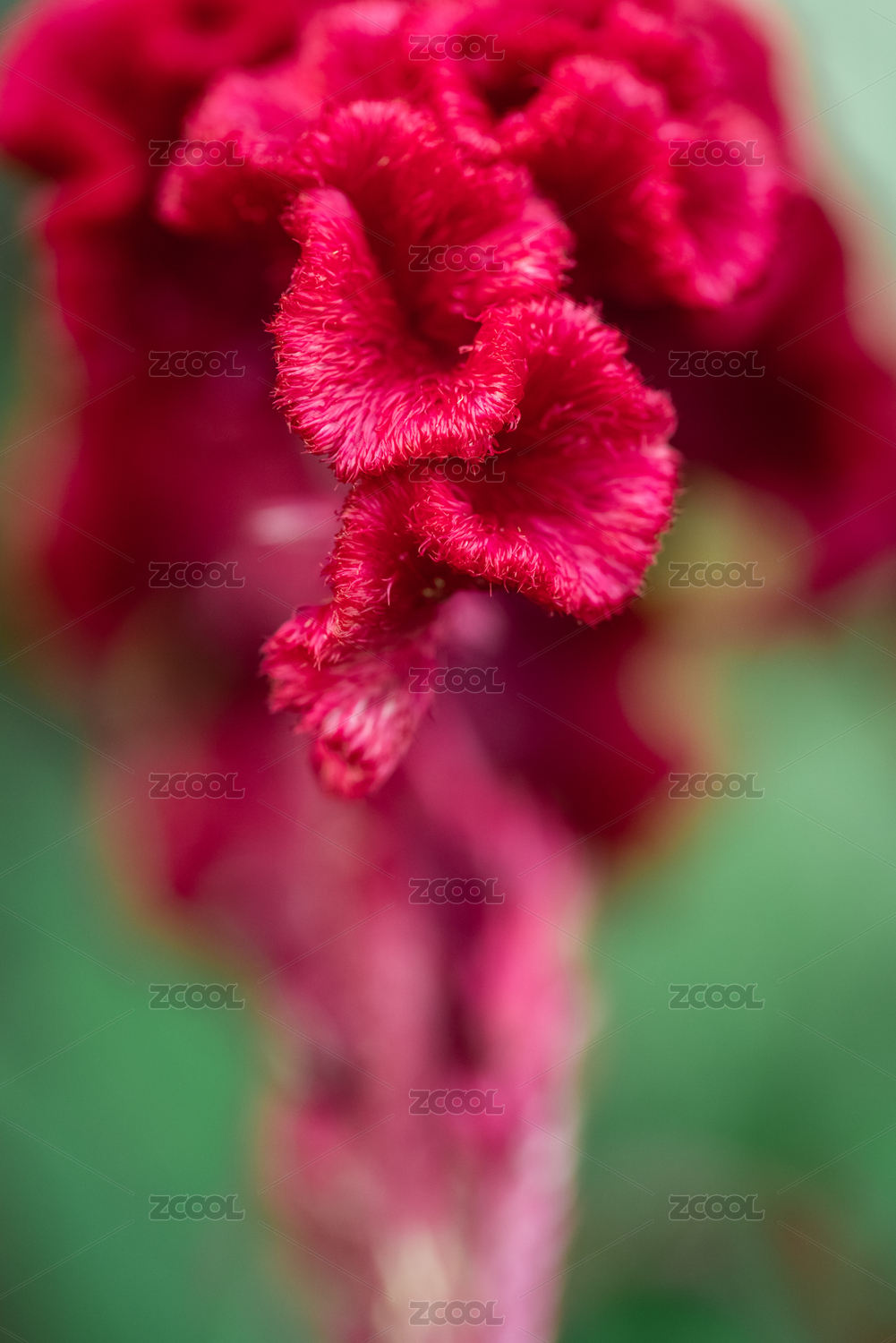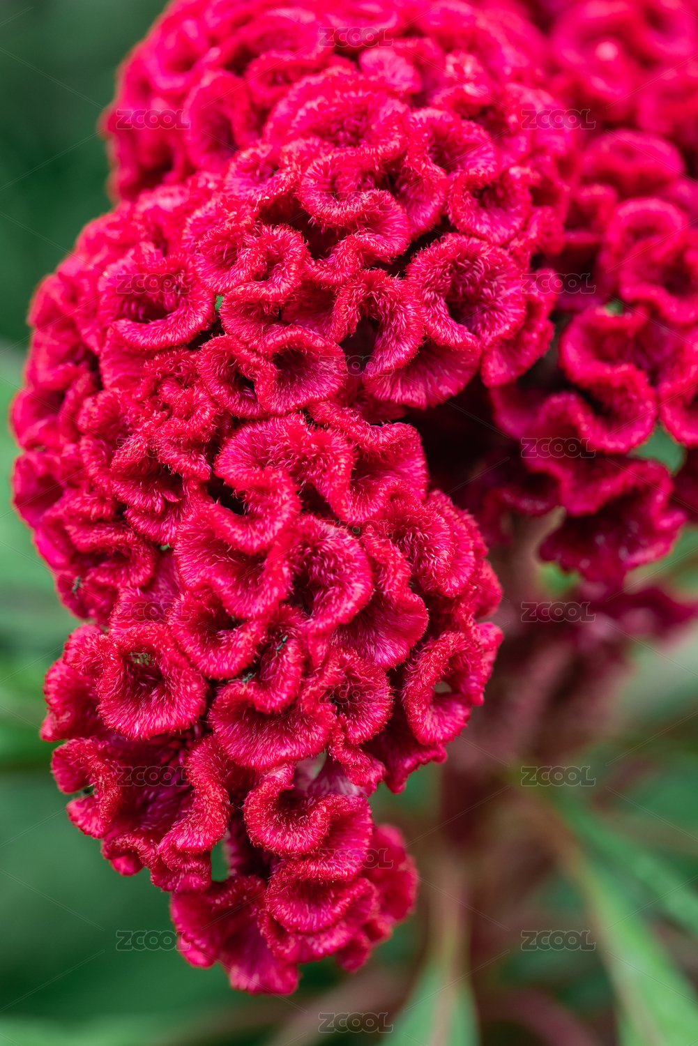 盛放的紅色雞冠花局部特寫