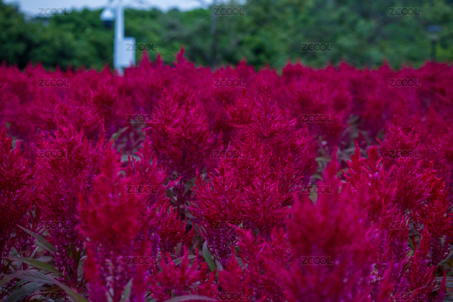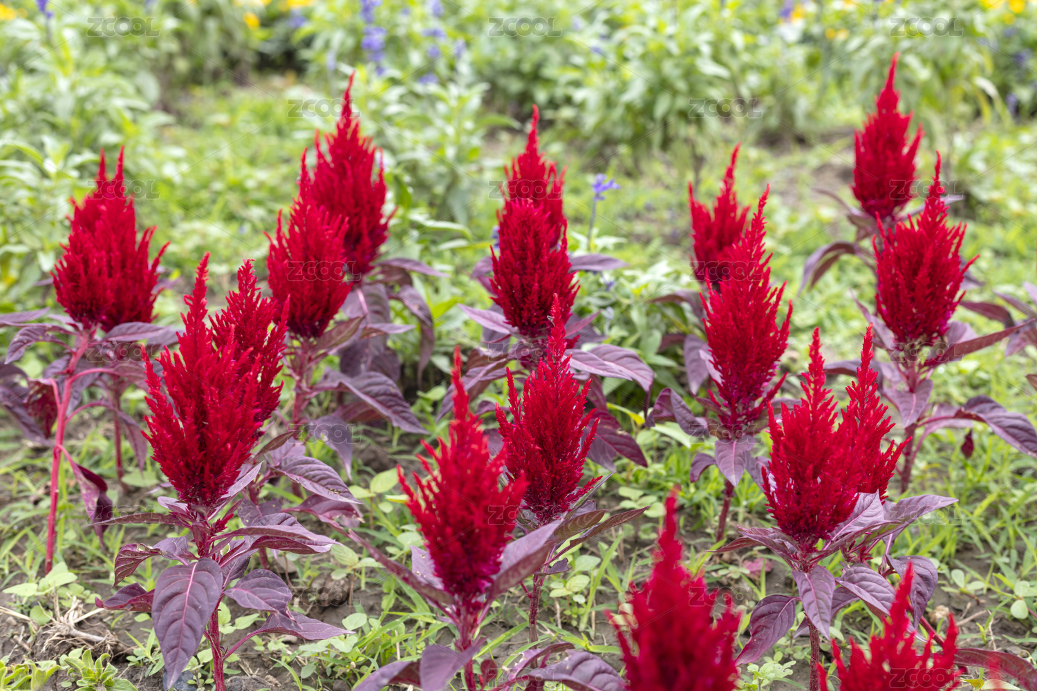 花園里盛開的紅色鳳尾雞冠花