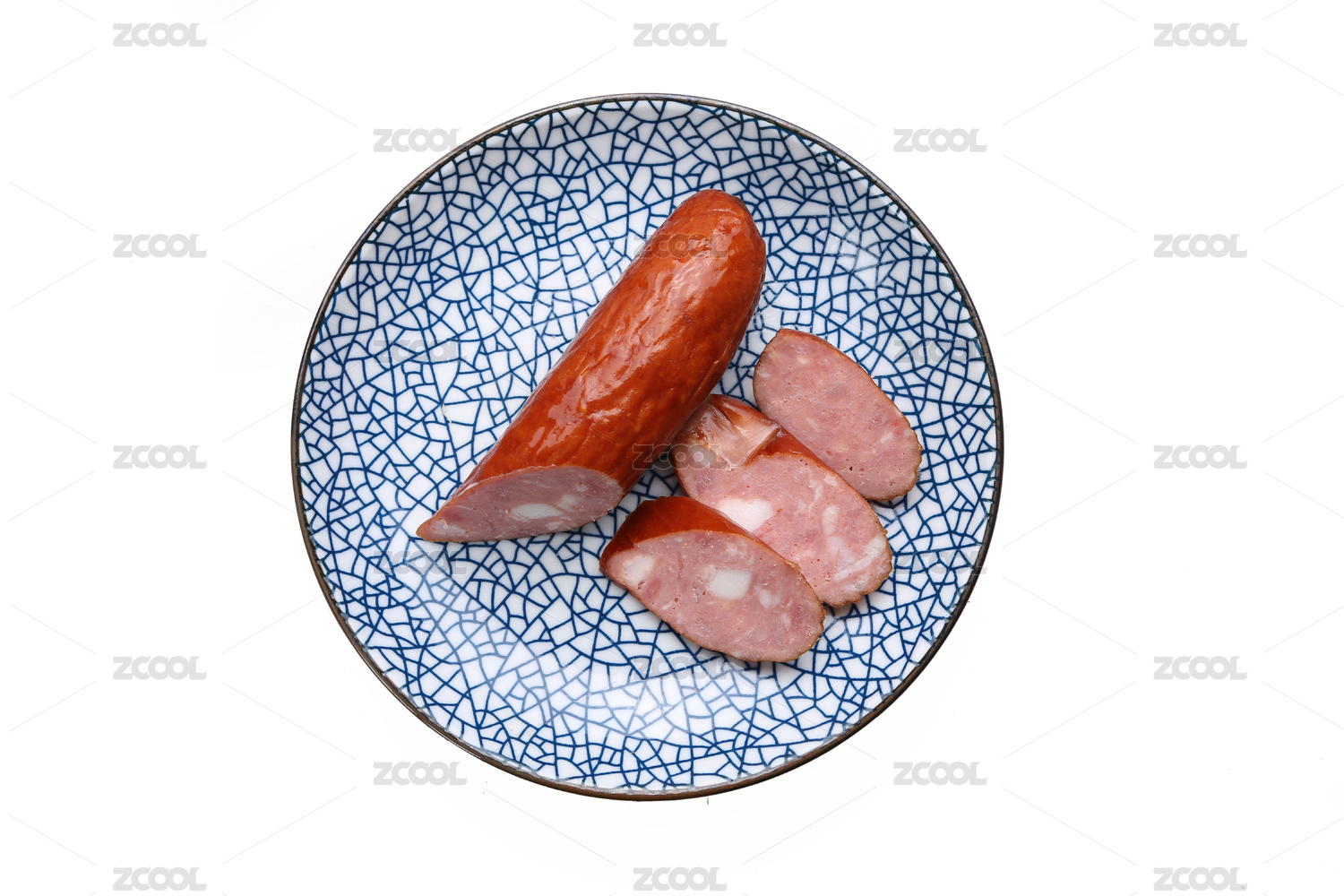 盤(pán)子裝著切片紅腸