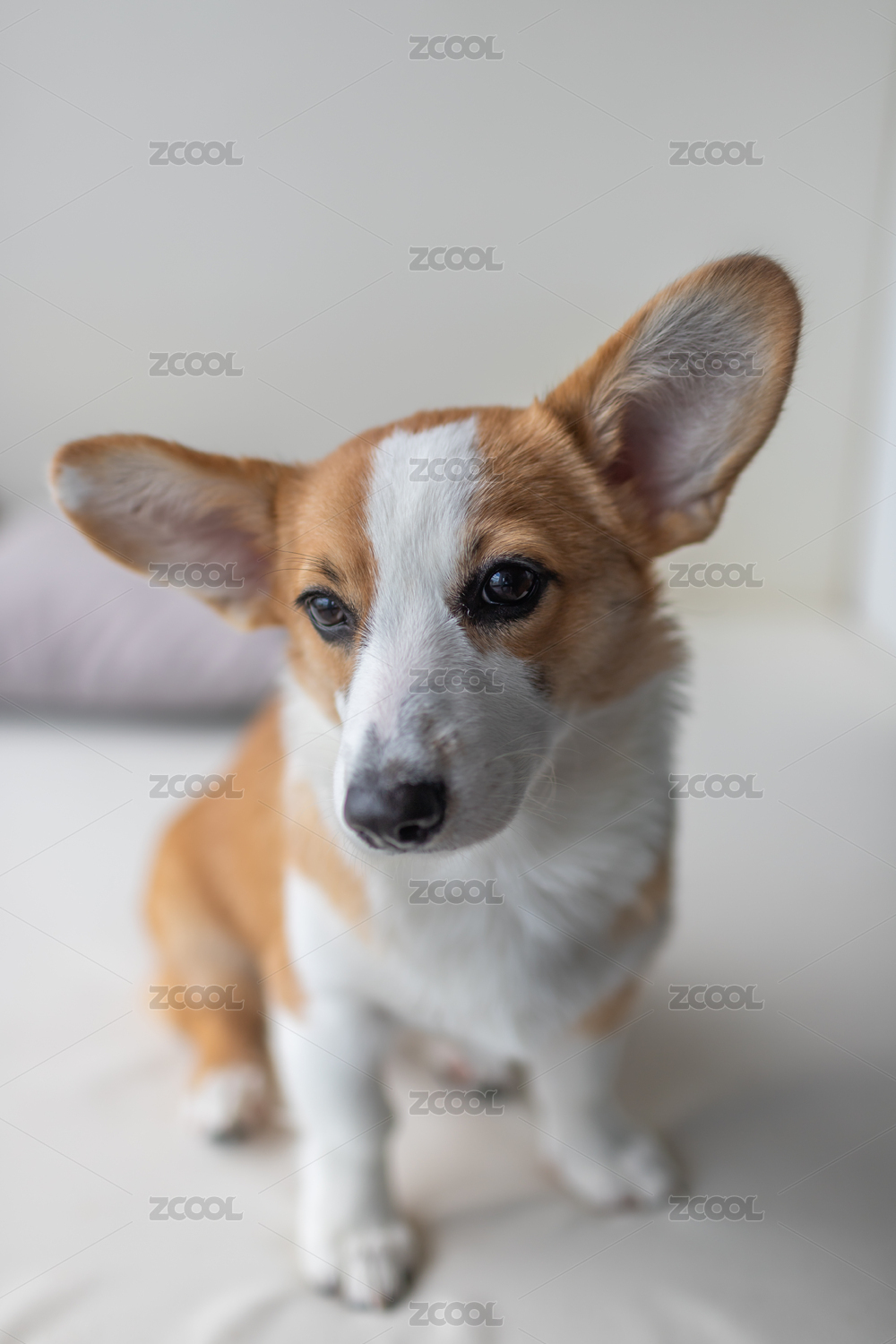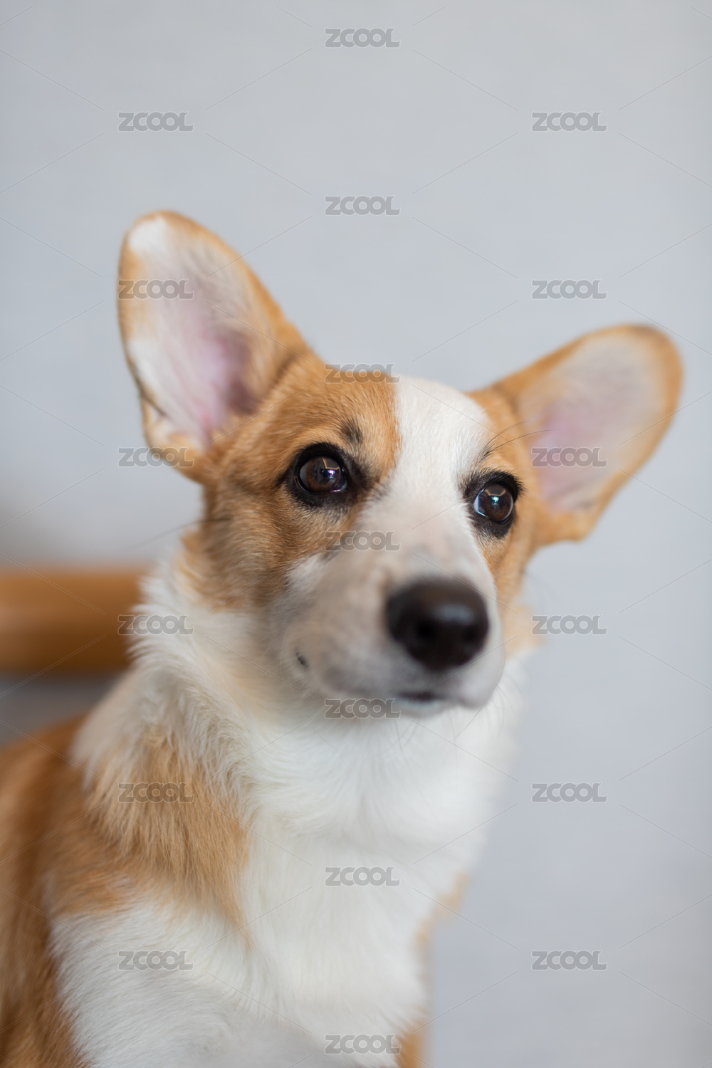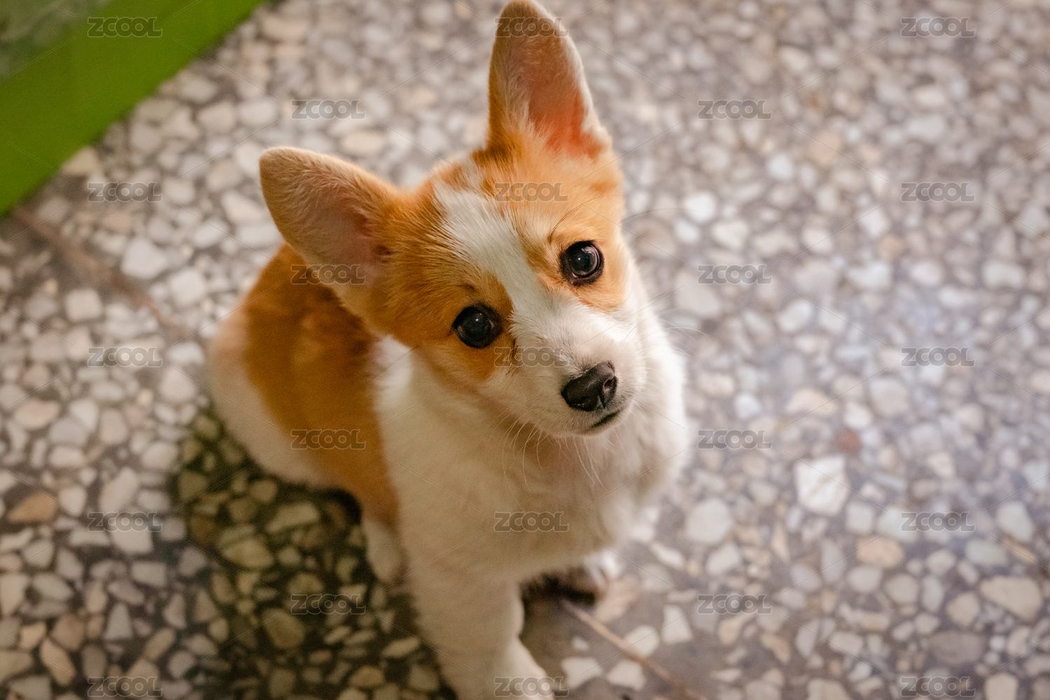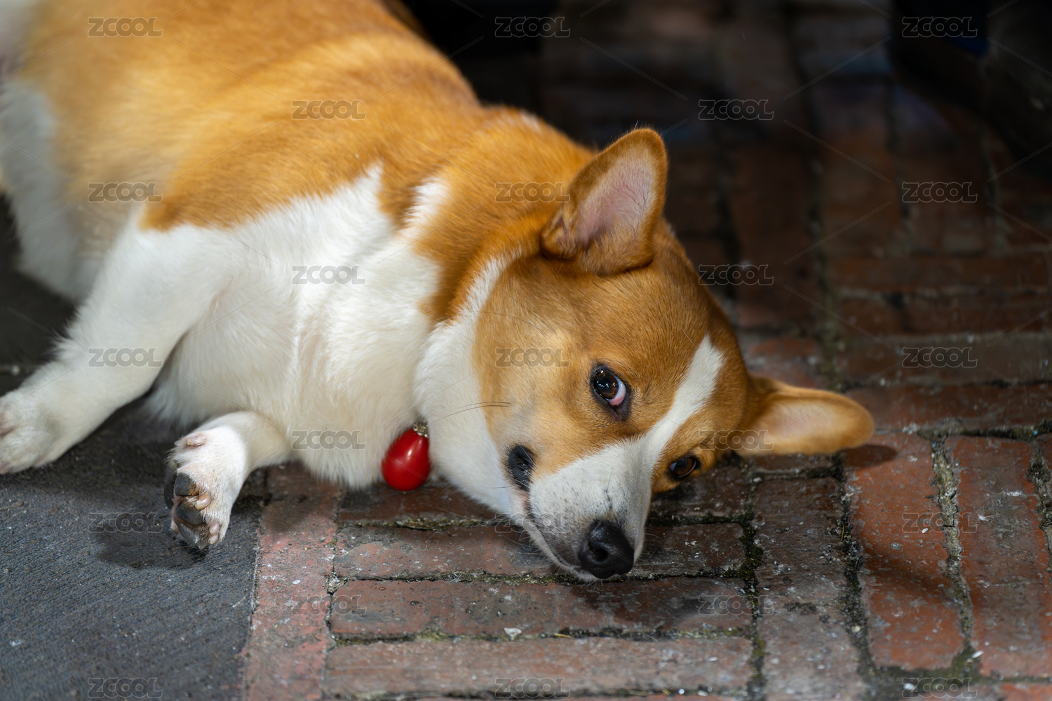 一只好奇的威爾士柯基犬趴在地上