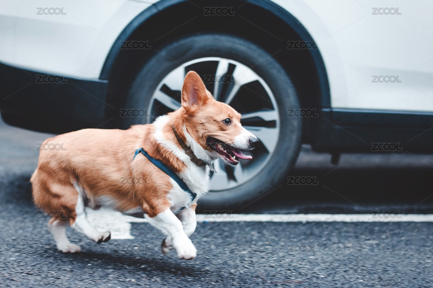 汽車邊奔跑的威爾士柯基犬