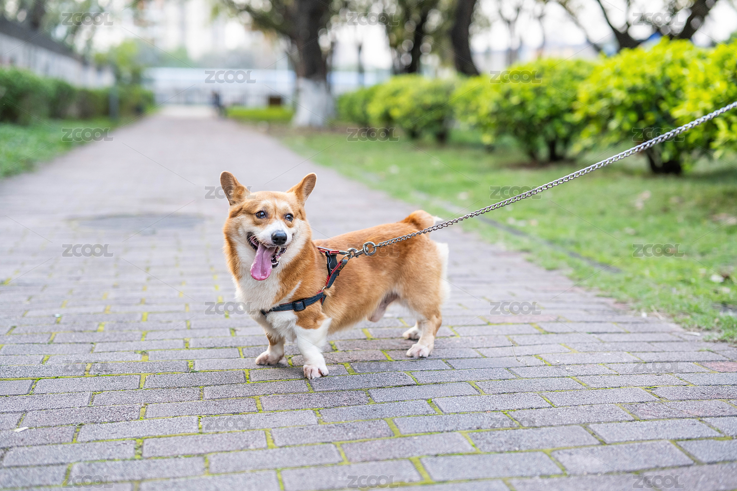 一只威爾士柯基犬 開心的吐著舌頭