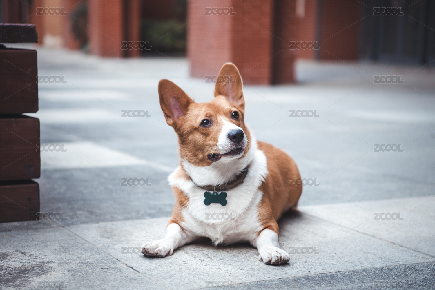 路邊的一只威爾士柯基犬好奇的看著鏡頭