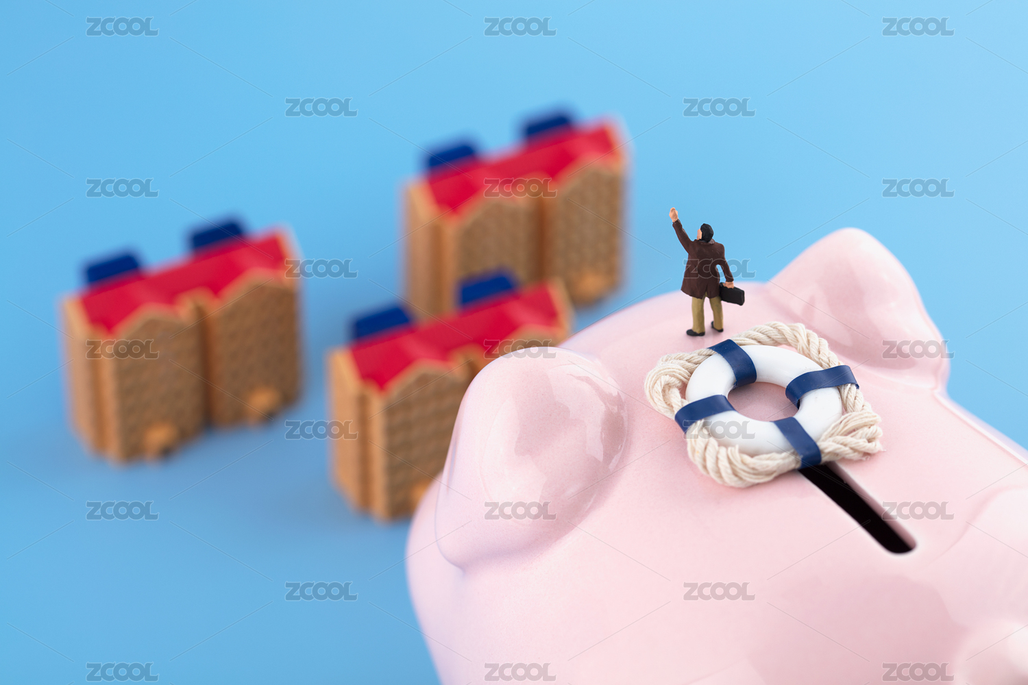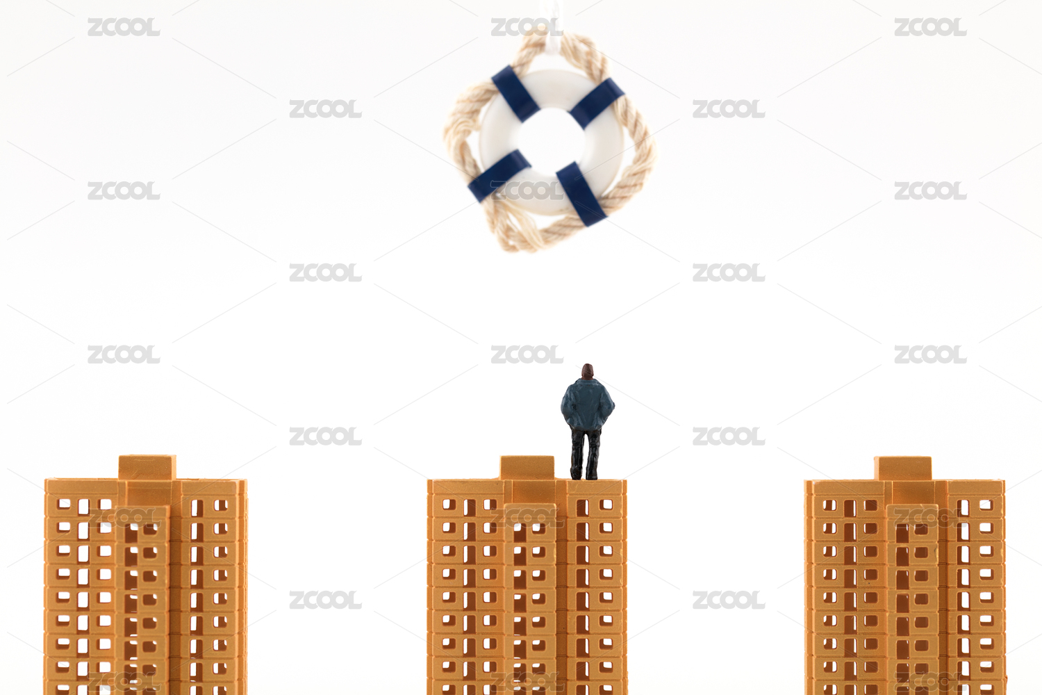 微縮攝影房子模型上救生圈