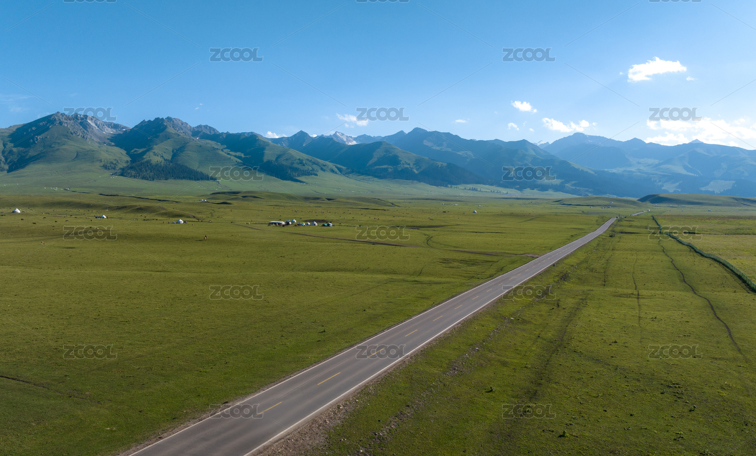 中國新疆伊犁那拉提景區(qū)觀光道路與森林
