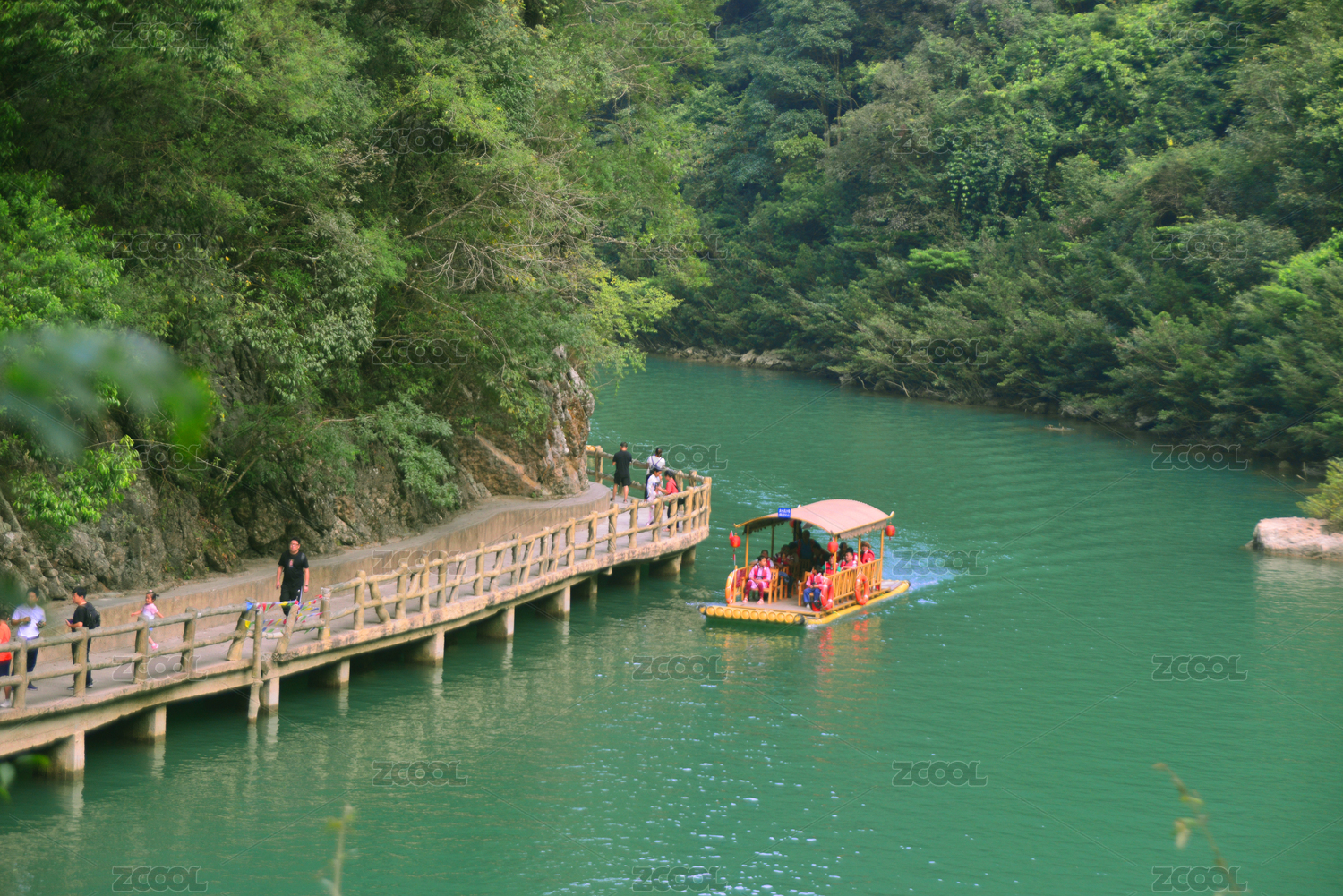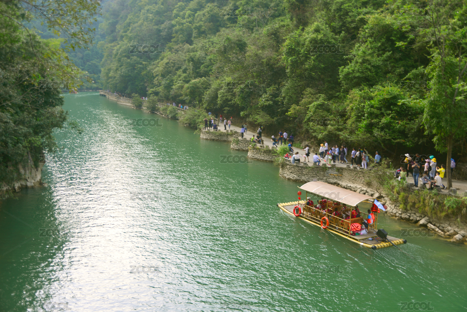 貴州黔南荔波大七孔景區(qū)山谷水春河觀光道和竹排游船