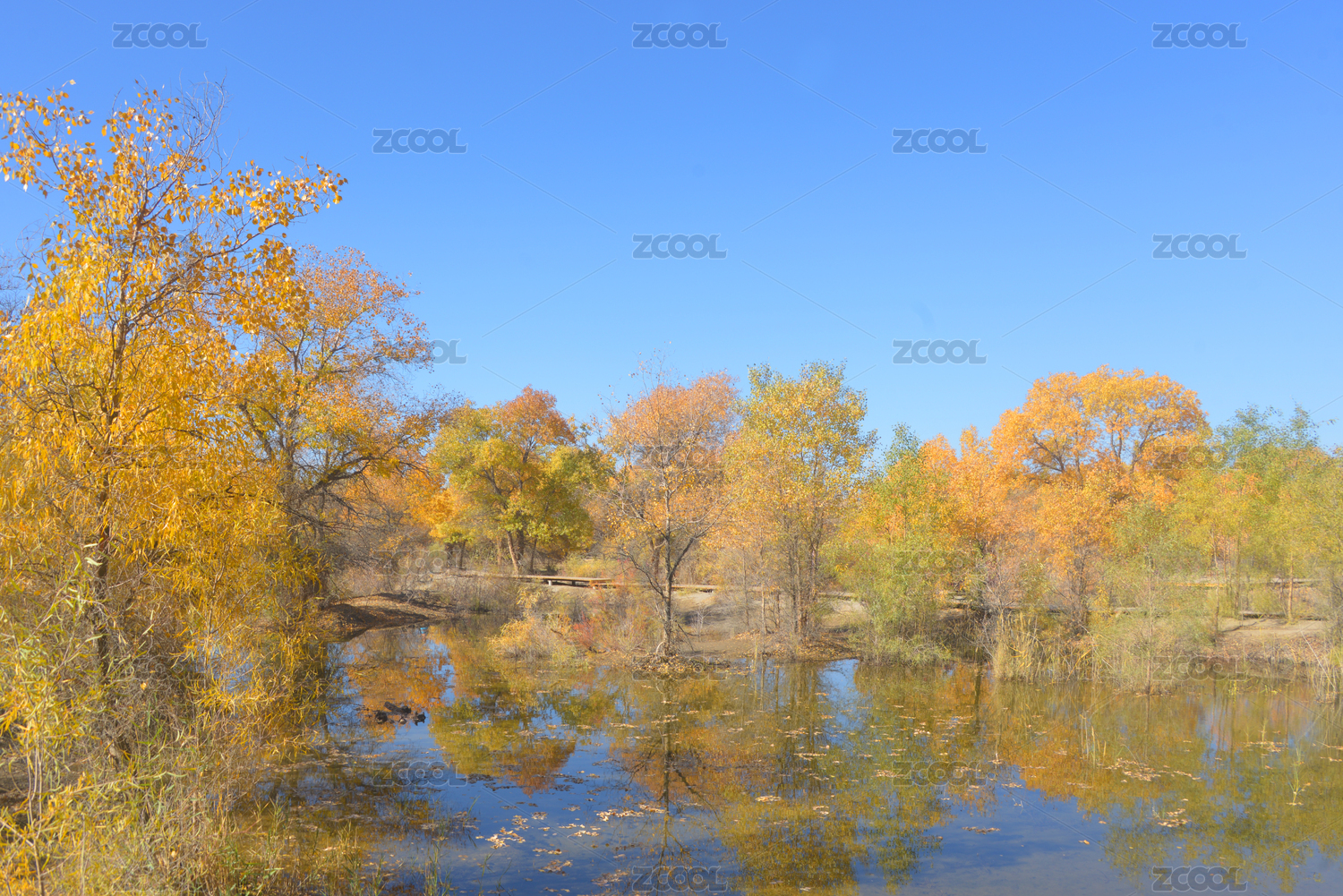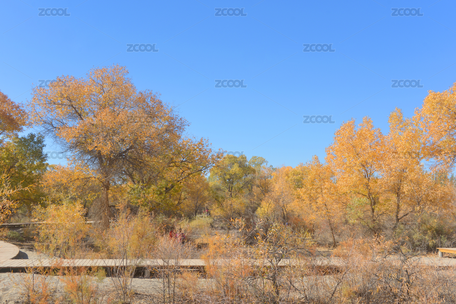 中國甘肅金塔胡楊林景區(qū)步行觀光棧道