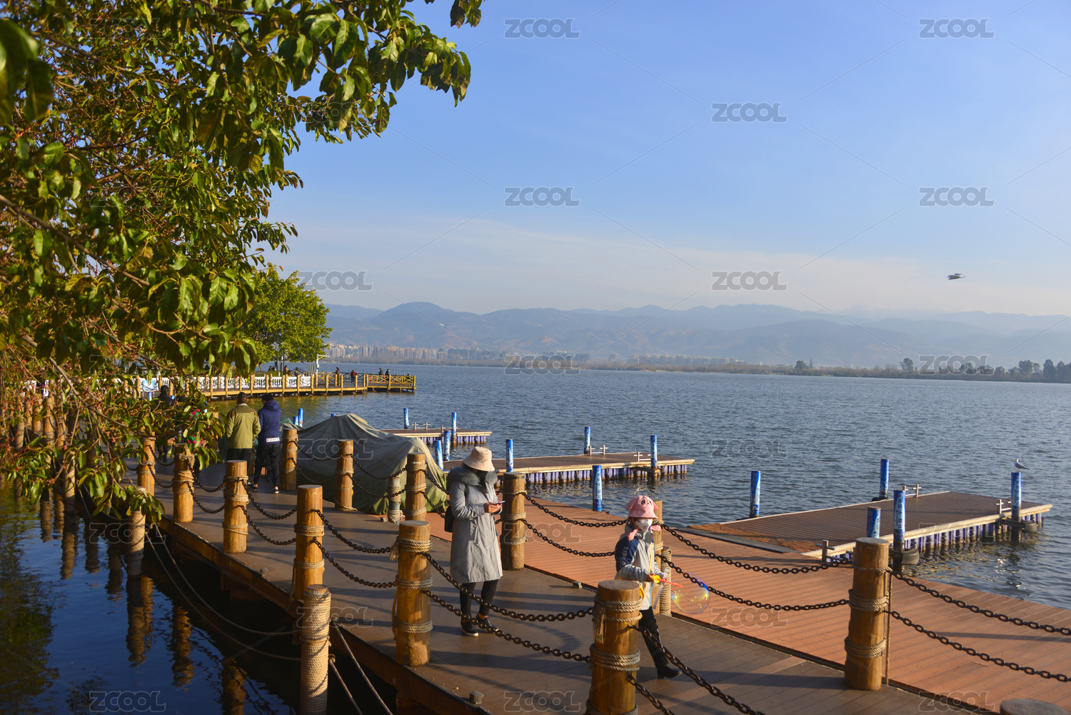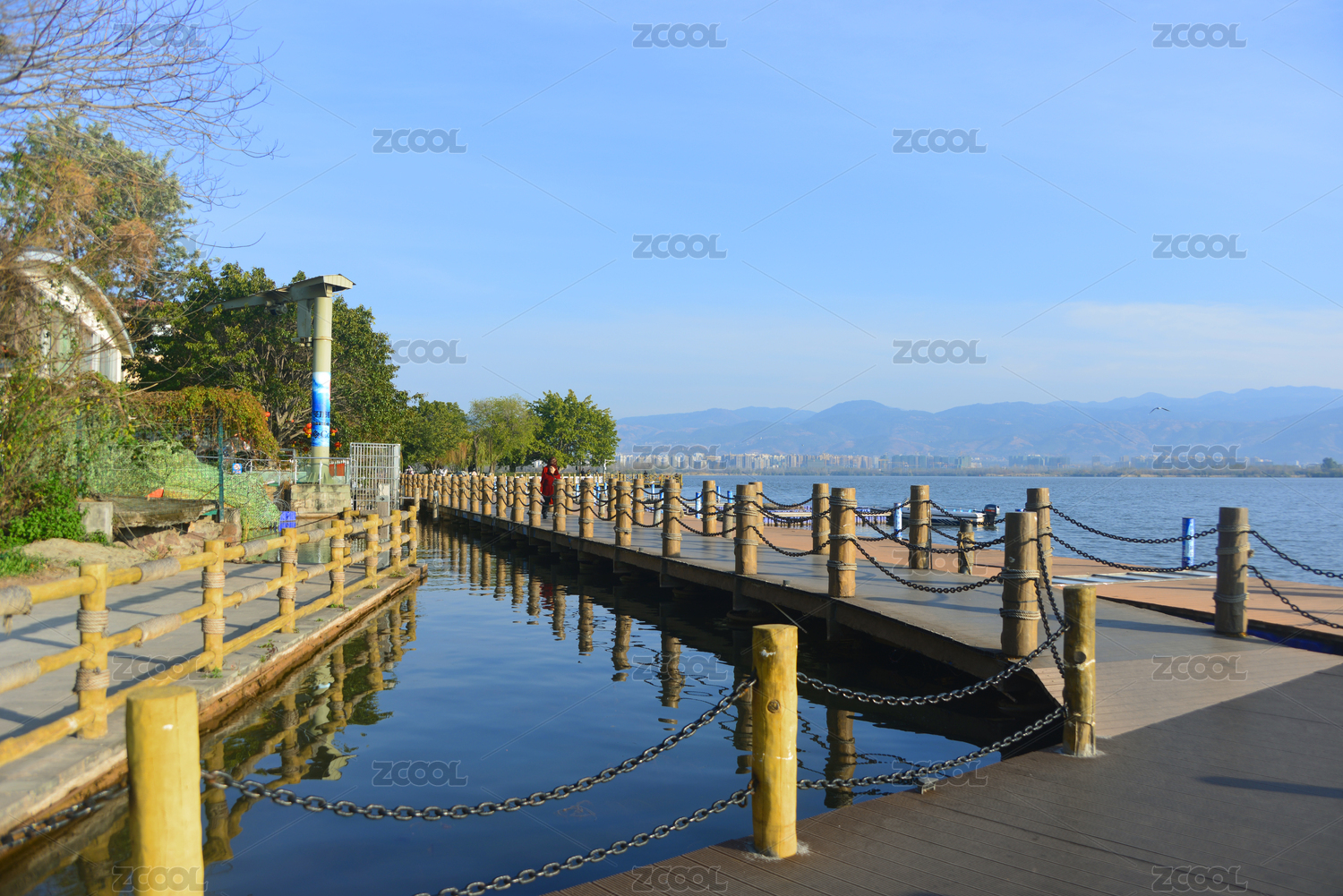 四川西昌邛海邊環(huán)湖的步行觀光棧道