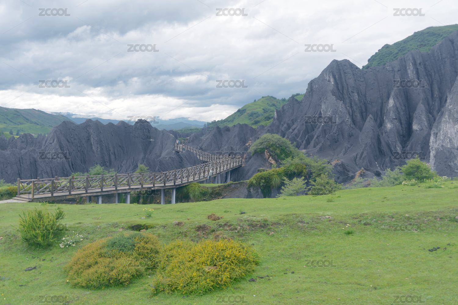 中國四川甘孜州八美墨石公園土石林木橋
