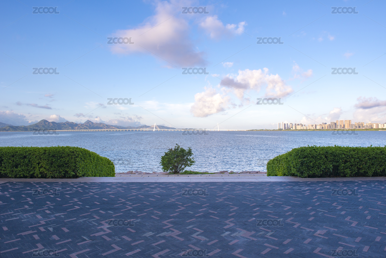 廣東深圳灣公園石板觀光道和大橋風光