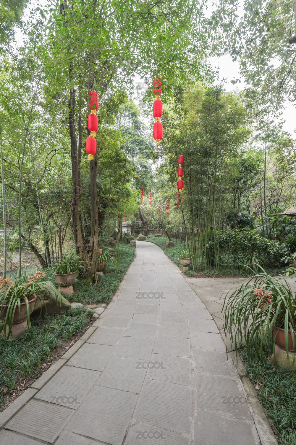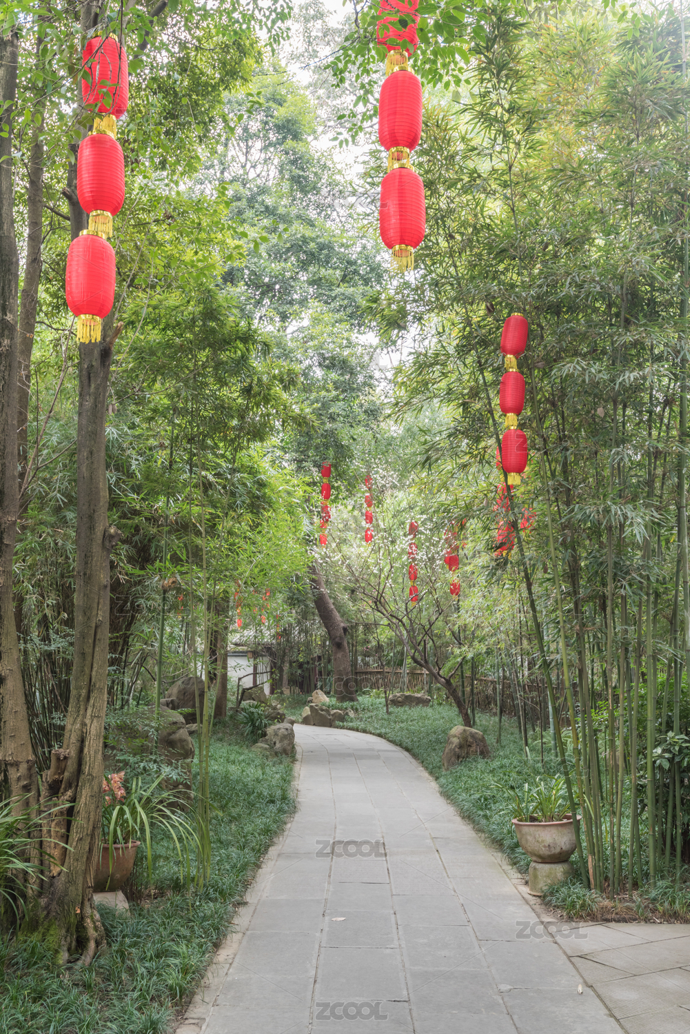 春季中國四川成都杜甫草堂竹林梅花草地池塘道路