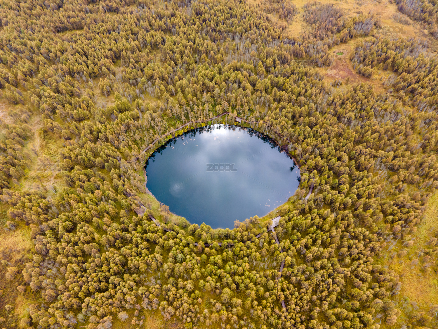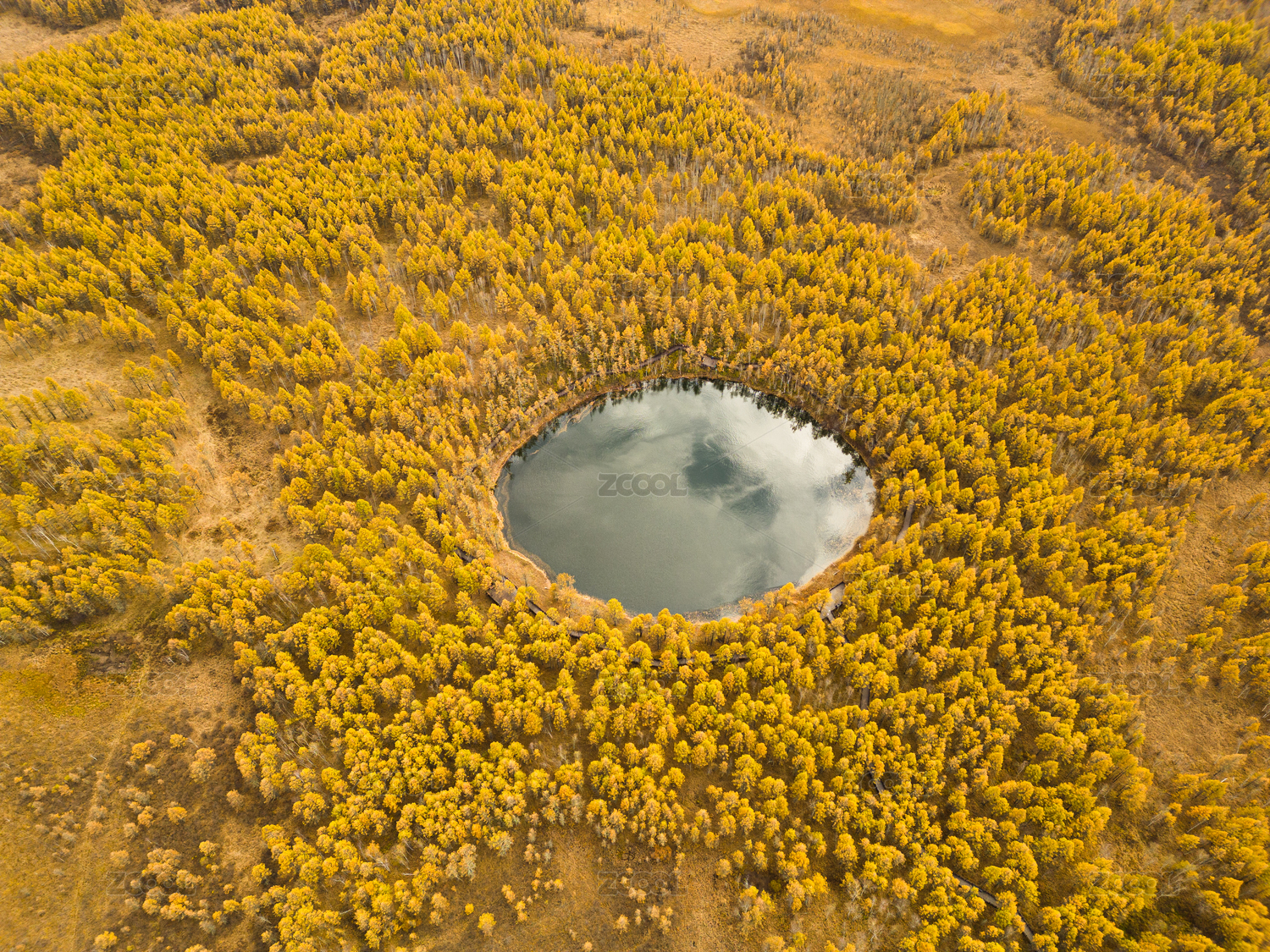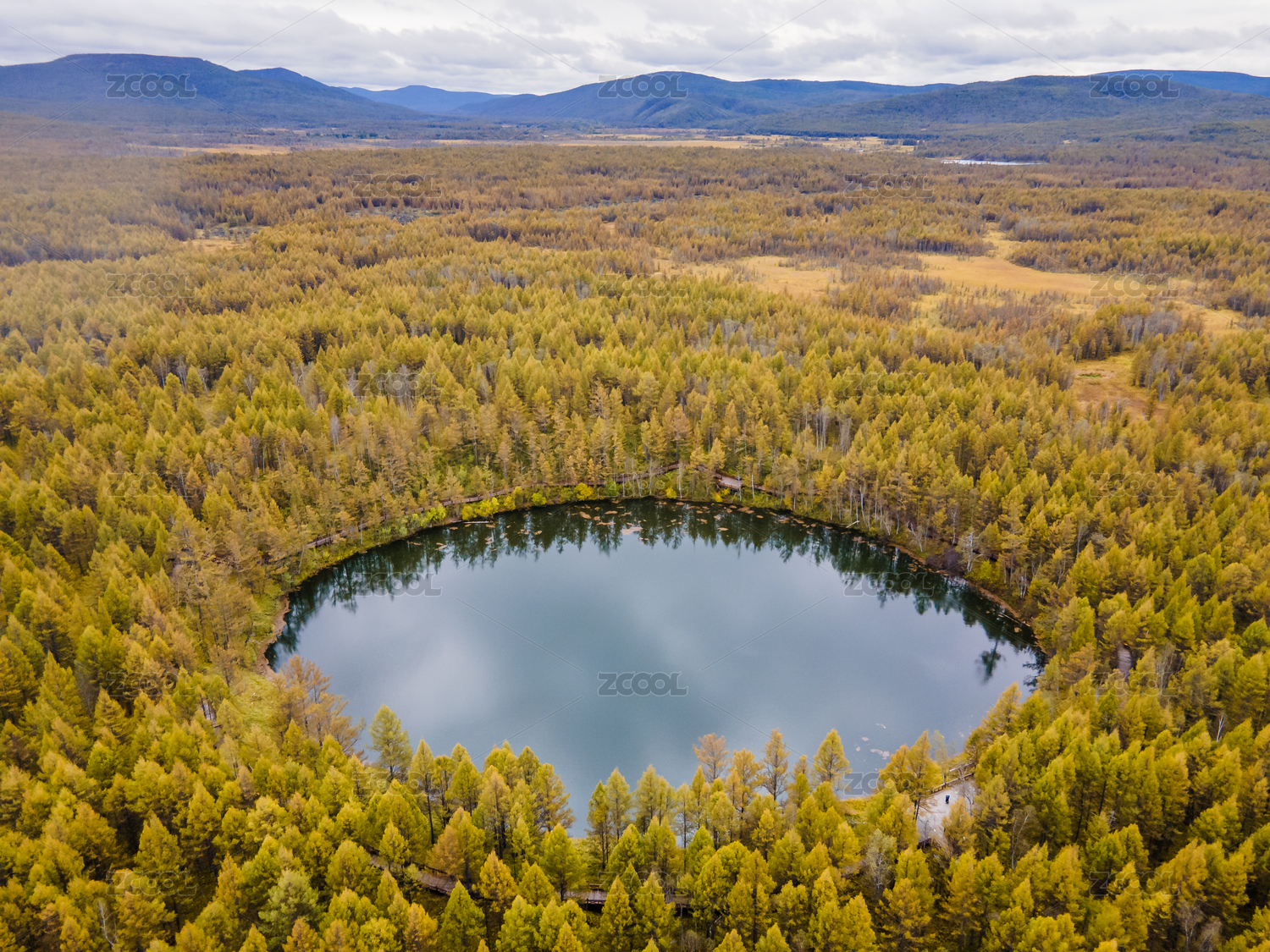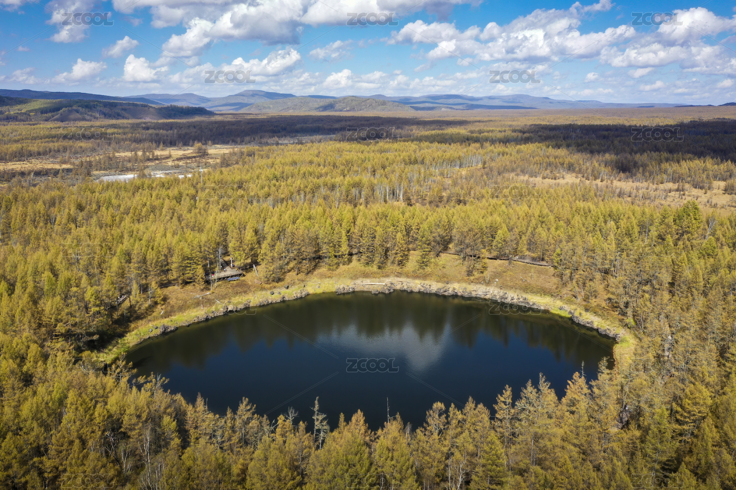初秋的阿爾山地池航拍鳥瞰