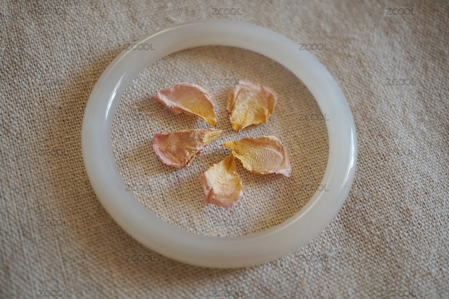 和田玉青海料藕粉色玉鐲與玫瑰花瓣雅致組合