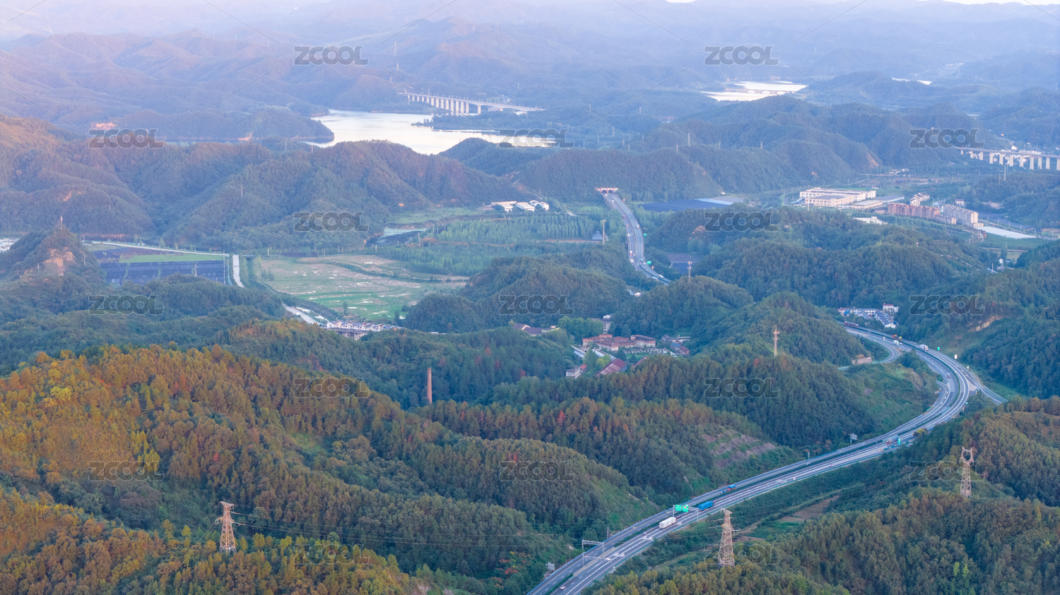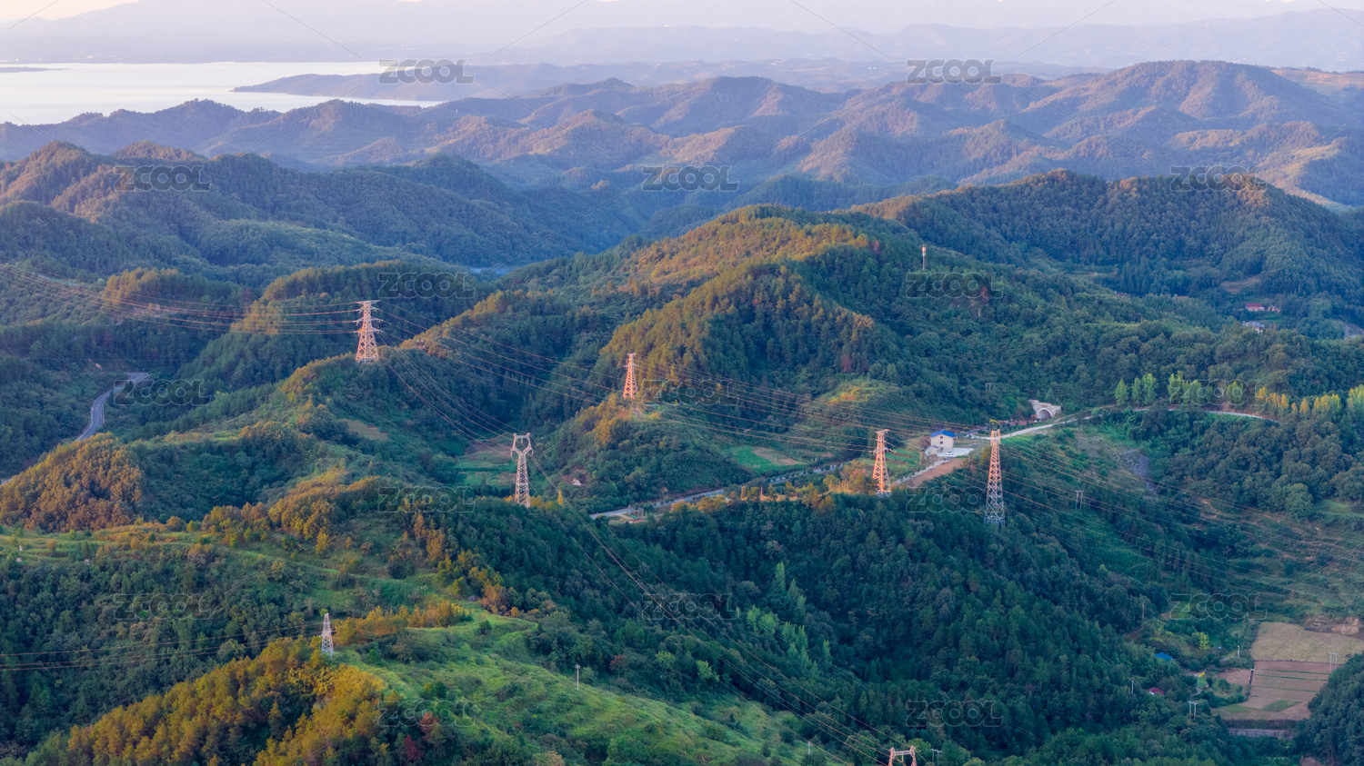 湖北丹江口水庫群山之間的特高壓輸電線路