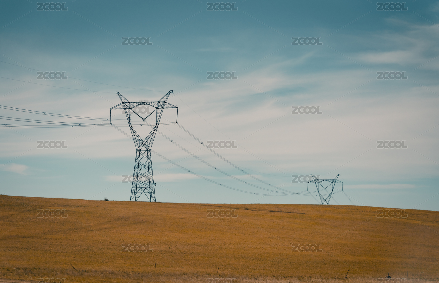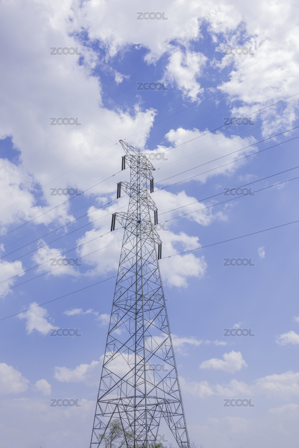 藍(lán)天白云下高壓輸電線和柏油馬路