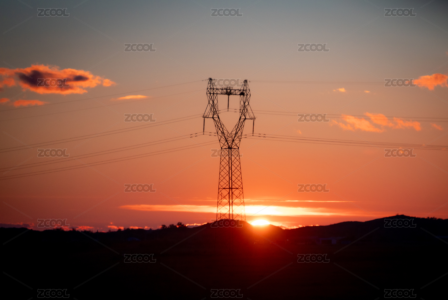 電力鐵塔電網(wǎng)變電站落日風(fēng)光
