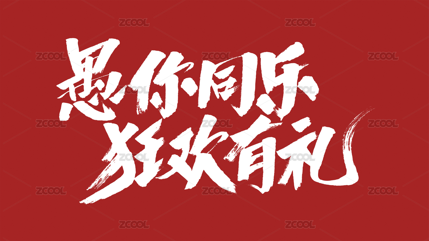 中國風(fēng)書法漢字字體設(shè)計愚你同樂狂歡有禮
